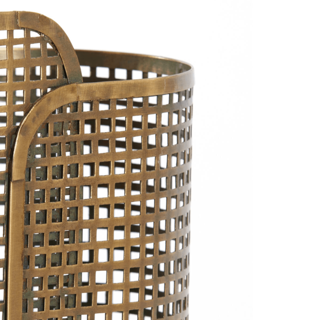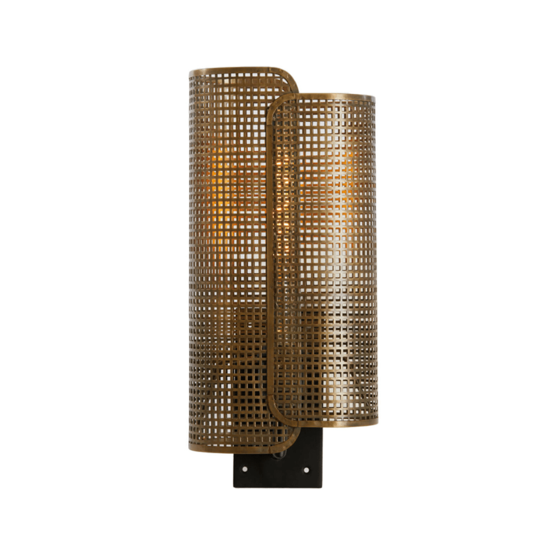 The metal wall lamps of the Maci collection brighten up interiors with their mesh, geometric patterns and shapes. Elegant antique bronze color. Its structure is made of 100% iron. Available in two sizes. Compatible with 1 E27 bulb, which is not included.