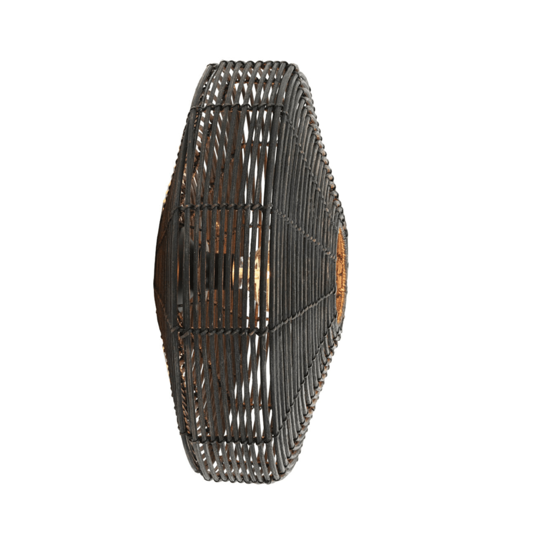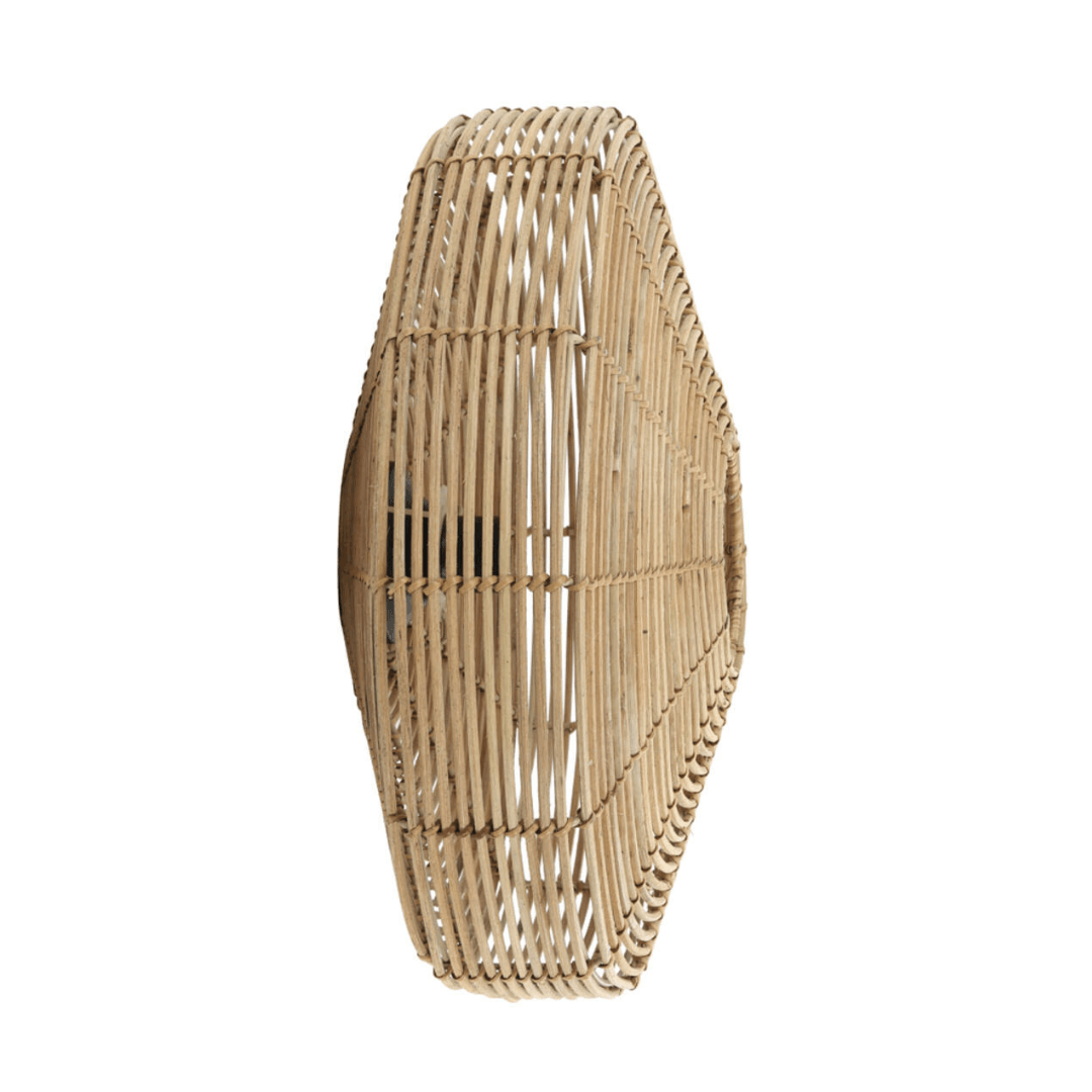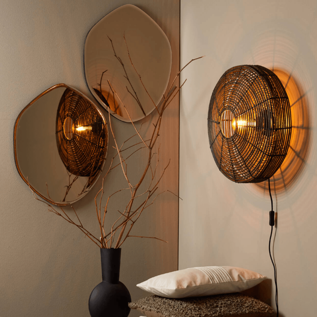 The Mataka rattan woven wall lamp creates an exotic and natural atmosphere in the interior. Available in natural or contrasting black. Diameter 52 cm. Compatible with 1 E27 socket, max. 40W bulb, not included.