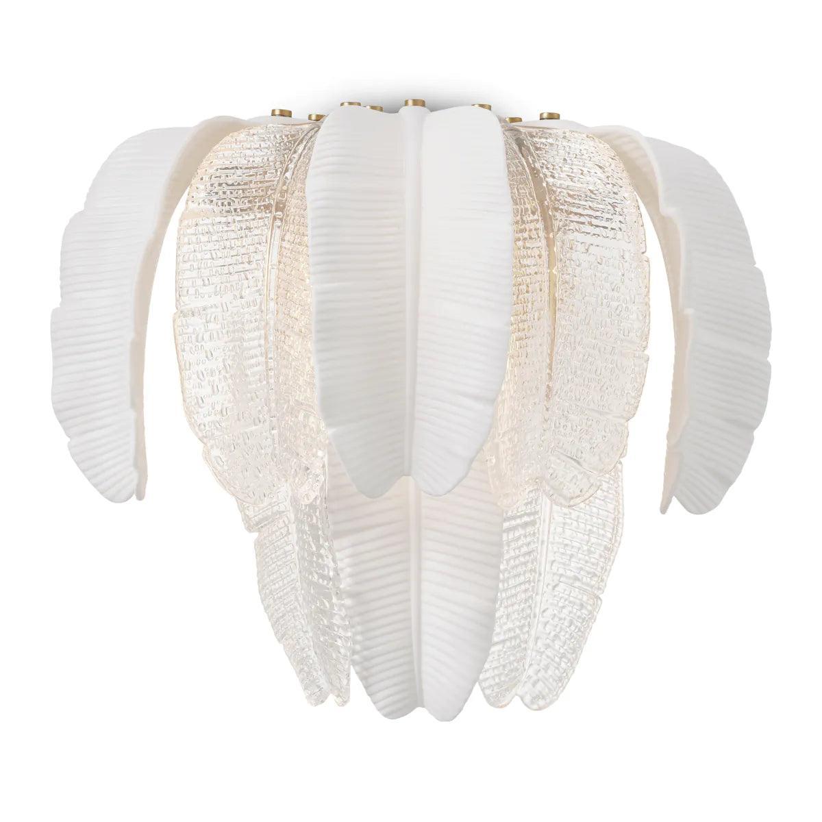The Eichholtz Saint Lucia Glass Wall Lamp is inspired by the graceful shape of banana trees. This unique wall lamp combines ceramic and textured glass, creating a harmonious blend that reflects the beauty of nature and artistic sophistication. It fills the room with warm light, creating a natural atmosphere. Its unique shape and use of materials make it a real jewel in the interior.