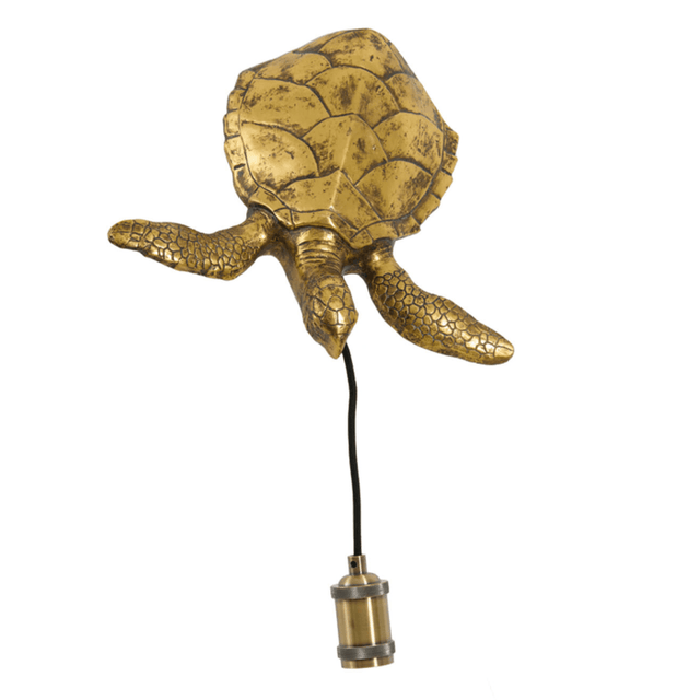 The extravagant Turtle wall lamp brings character to any room. If you are looking for a unique, natural atmosphere, or if turtles are your favorite, then you have found the perfect wall lamp. Made of resin, its bronze-colored design and lifelike details are guaranteed to steal the show. Compatible with E27 socket, max. 40W bulb, which is not included.