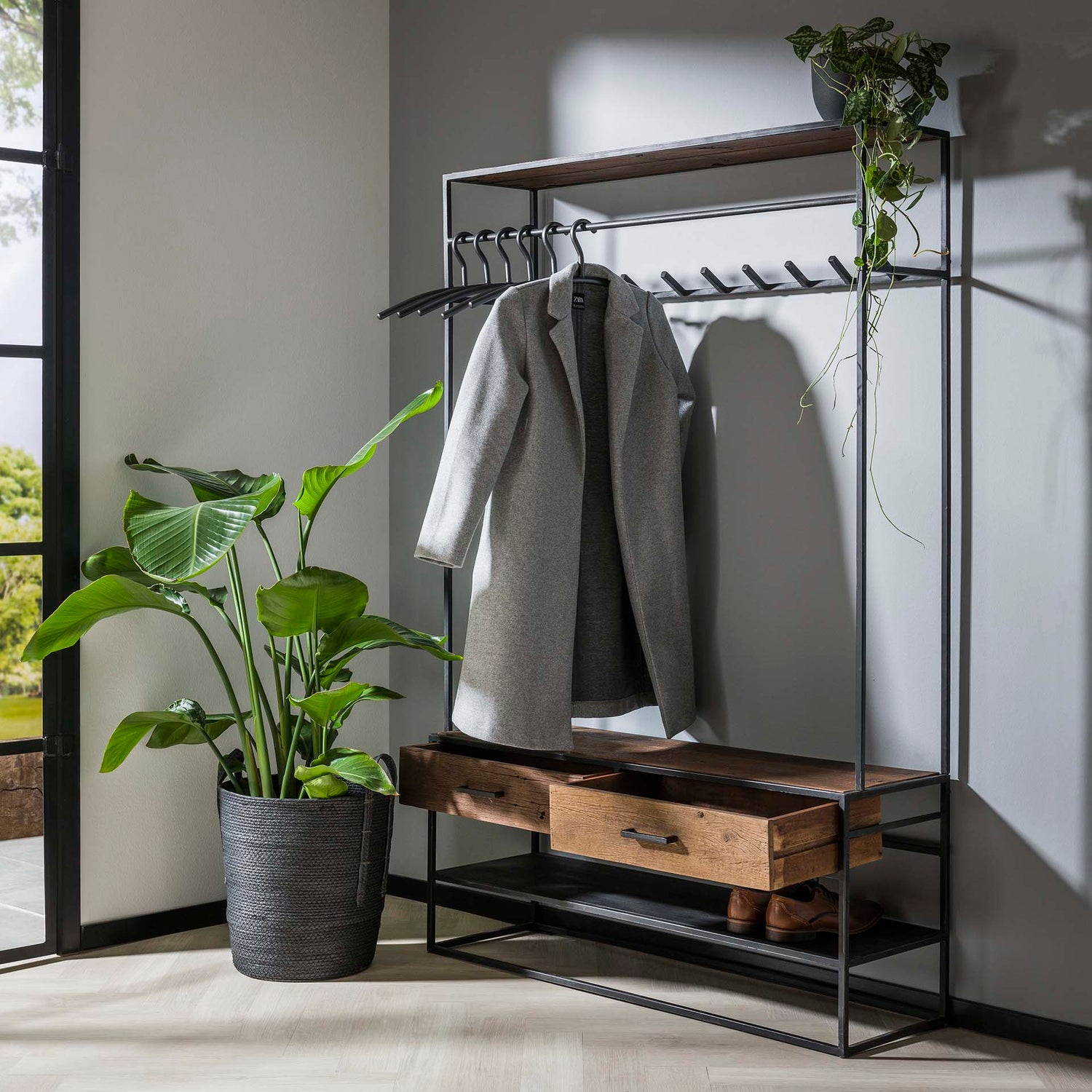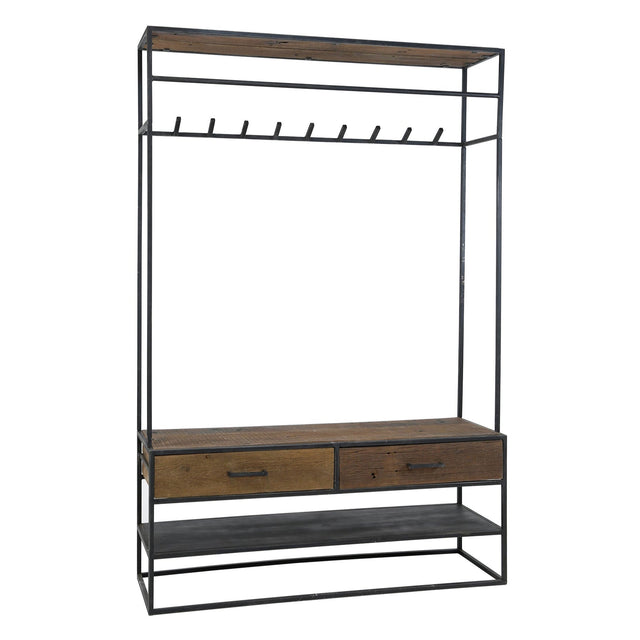 A Zistra 577 fogas egy nagyon praktikus bútordarab, amely kilenc darab kampóval, egy akasztó sínnel, két polccal, és két fiókkal rendelkezik. A nyers, natúr színű fa, és a fekete fém elegáns összhangot teremt, így könnyedén illeszkedik bármely előszobába.
