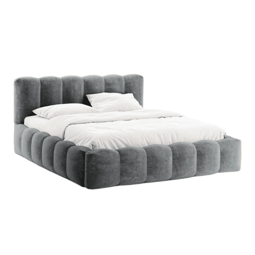The modern elegance and sophisticated comfort of the Lupine bed with a 160x200 cm lying surface will transform your bedroom into a place with a unique atmosphere. The upholstery creates a spectacular effect with deep stitching and thick fillings. Its impressive design brings harmony and highlights the peace needed in the resting place. The high headboard provides comfortable support, and its solid construction guarantees durability and stability. The Lupine bed with linen storage, covered with chenille upholstery, is available in six colors and four sizes.