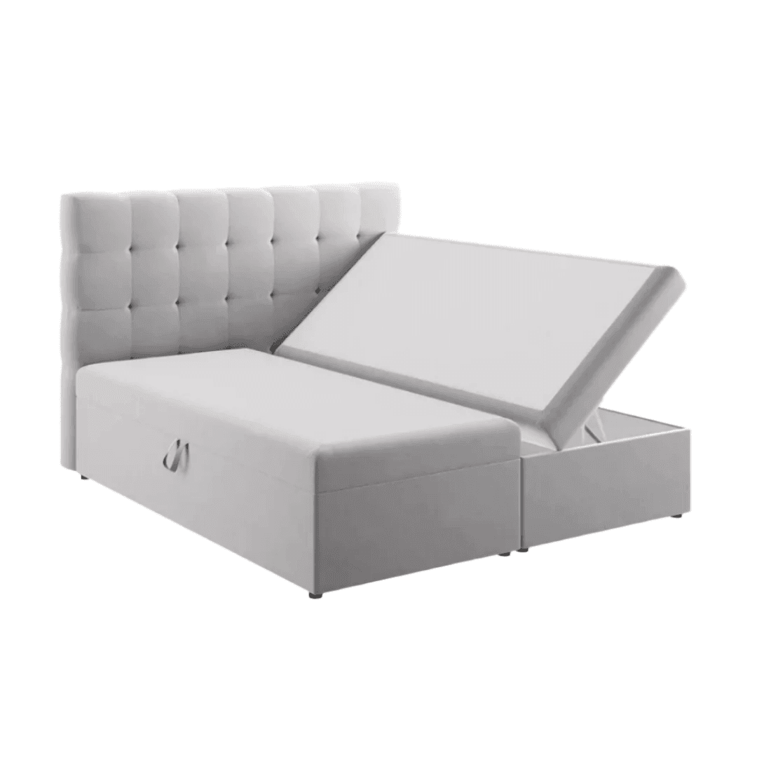 With its detailed and carefully quilted backrest, the Mamaia double bed fills every bedroom with unique, distinctive and positive energy. The luxurious upholstery made of soft, durable material is a combination of modernity and elegance. The lying surface is 160x200 cm, and there is a spacious linen holder under the part that can be opened on both sides. The Mamaia bed is available with soft bouclé upholstery in six colors and three different sizes. The mattress thickness is 16 cm.
