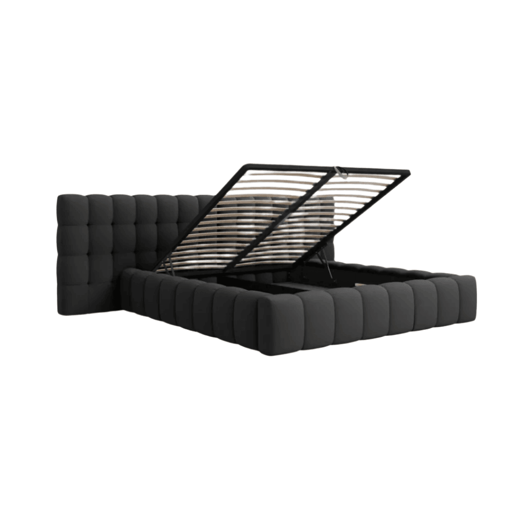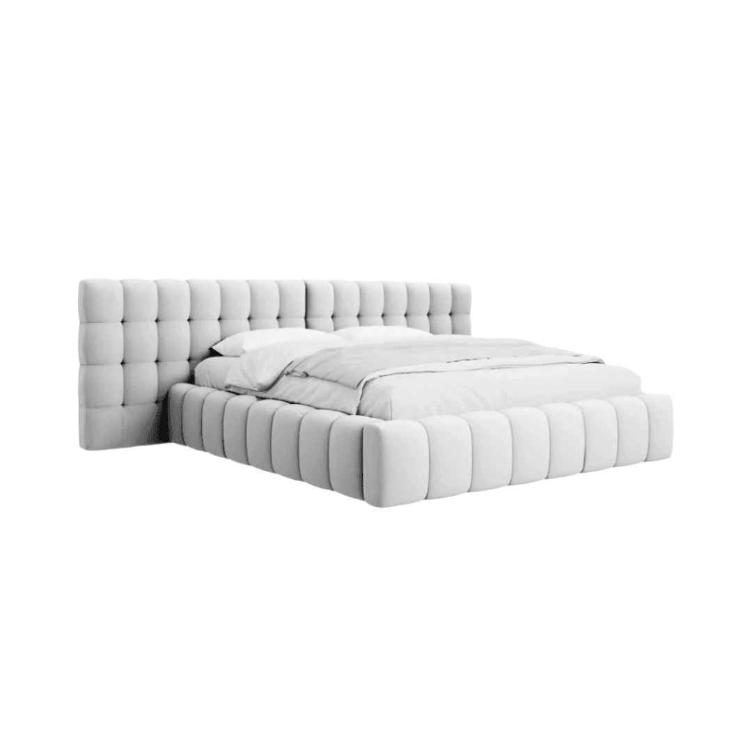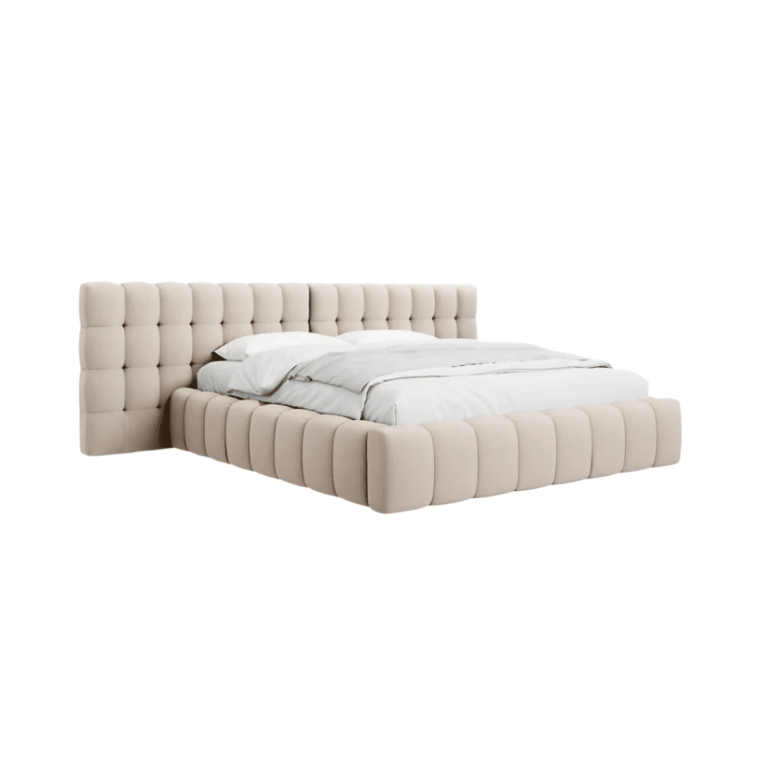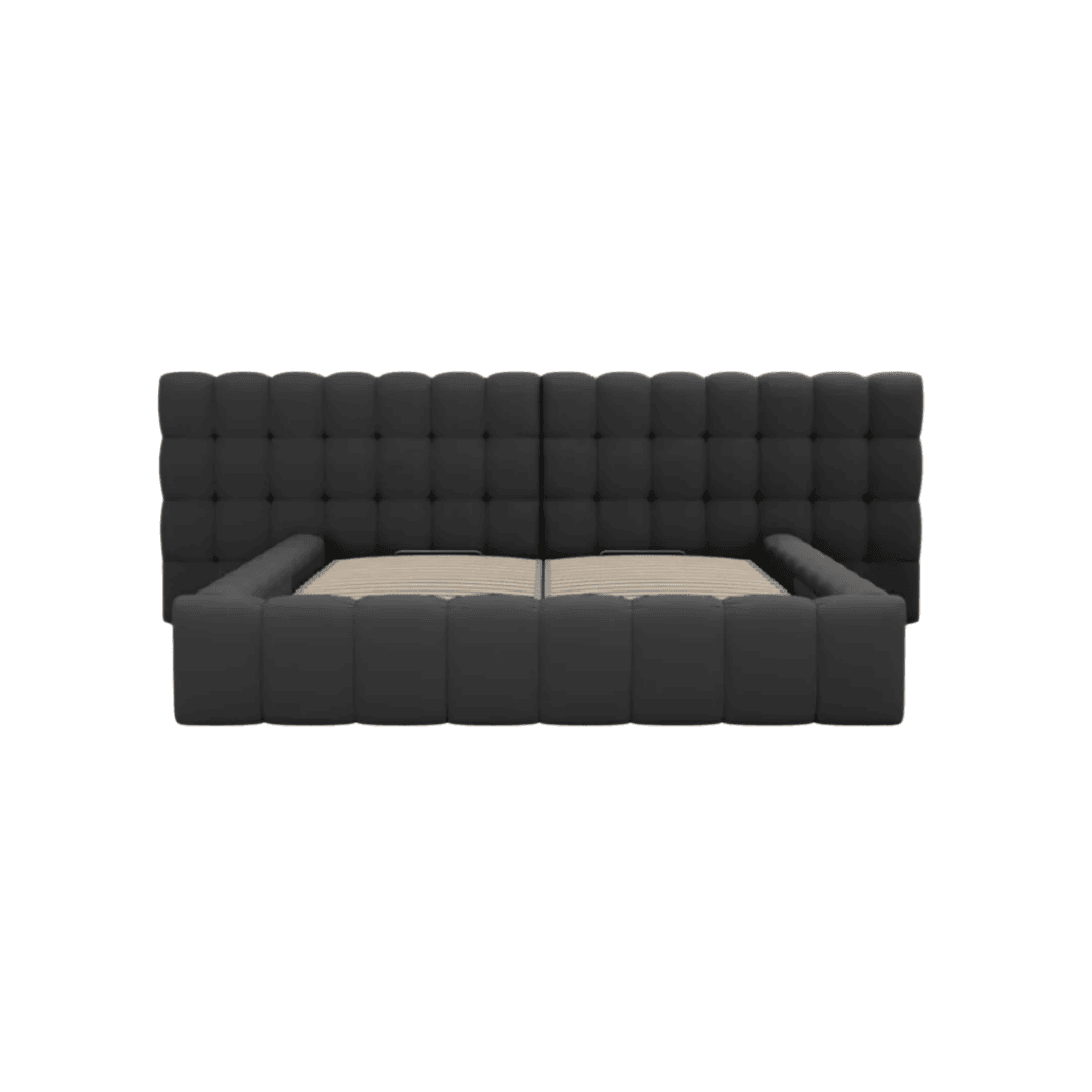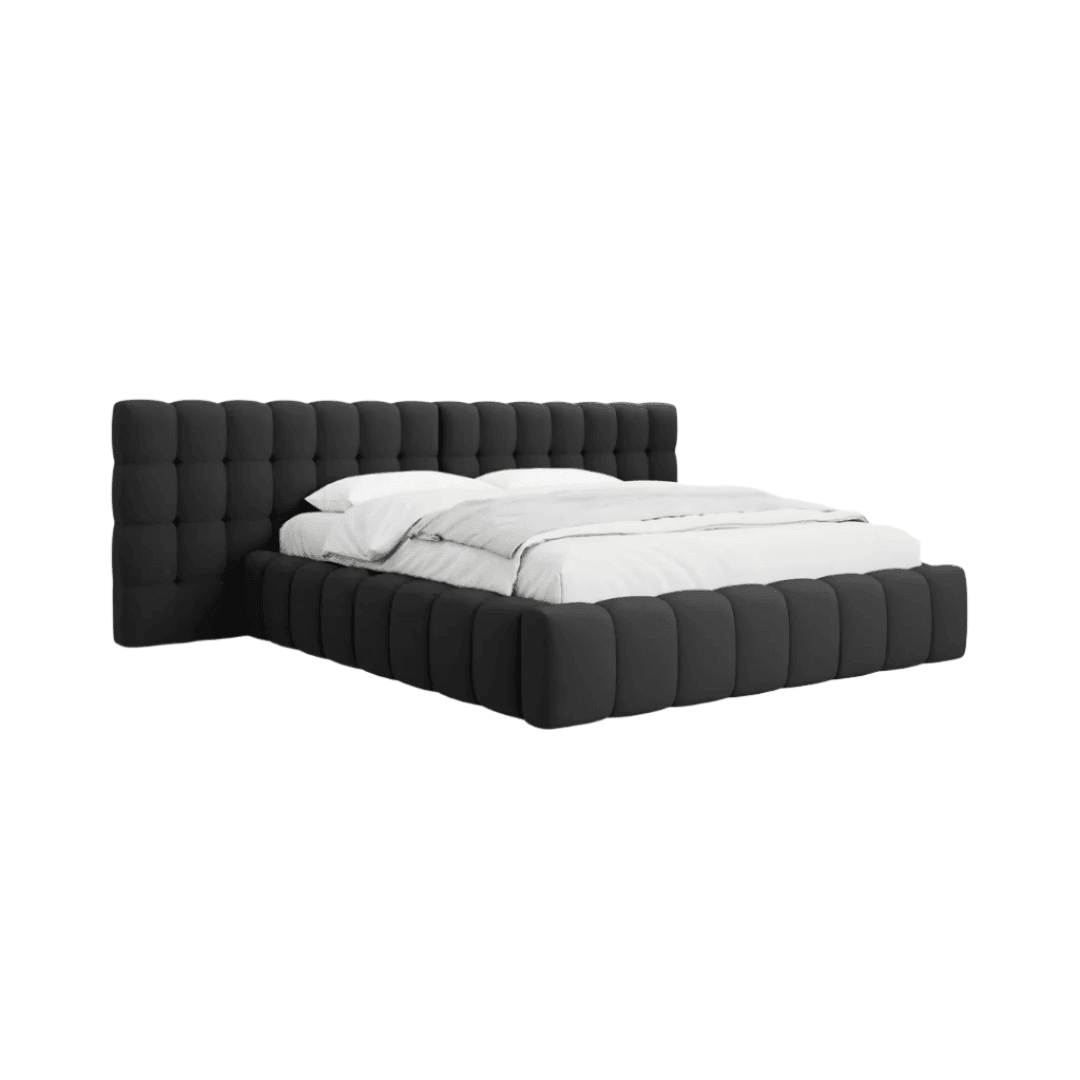 With its carefully quilted backrest and side elements, the Mamaia bed frame will fill any interior with a unique, distinctive and positive energy. The luxurious upholstery made of soft, durable material and the wide headboard are the essence of modernity and elegance that will brighten up any bedroom. The lying surface is 200x200 cm, and there is also a linen holder under the bed slats. The Mamaia bed frame is available in seven fabric upholstery colors, four sizes and a narrow version.