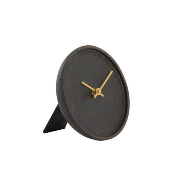 If you are looking for a minimalist and natural clock, the Veti mango wood table clock is a great choice. It was designed with a minimalist style in mind. The dark brown wood and gold metal details represent a timeless style and complement each other perfectly. Available in different sizes and finishes.