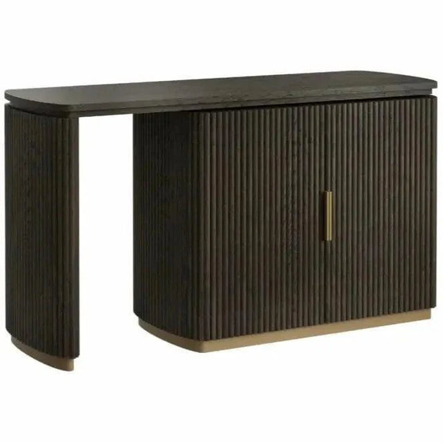 A Cambon íróasztal egy elegáns és praktikus bútordarab, amely tökéletesen illeszkedik bármilyen otthoni, vagy irodai dekorációhoz. A klasszikus sötétbarna tölgy szín elegáns megjelenést kölcsönöz az asztalnak. Két ajtóval, tágas tárolóhellyel, és 134x45cm-es asztallappal rendelkezik, így minden munkához szükséges használati tárgy, és kiegészítő kényelmesen elfér rajta.