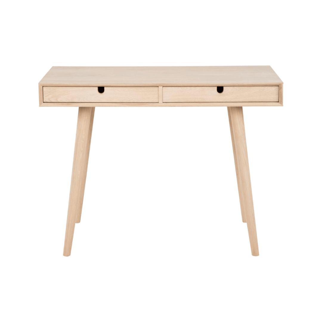 Inspired by Scandinavian design, the Century desk is designed to become a modern classic. It is characterized by clean lines and a minimalist look. The rectangular table top boasts a white pigmented oak veneer, while the slender oak legs give it a light feel. The two drawers provide practical storage for documents and other belongings.