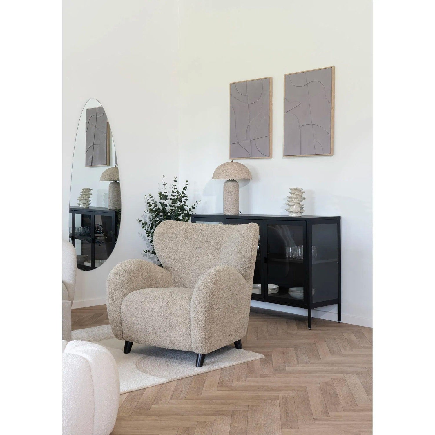The tabletop is made of white MDF with a marble print, which gives the table elegance and clarity. The legs can be gold or black painted metal, which further enhance the exclusive look of the table. Its round shape creates a friendly atmosphere in the space.