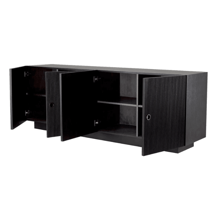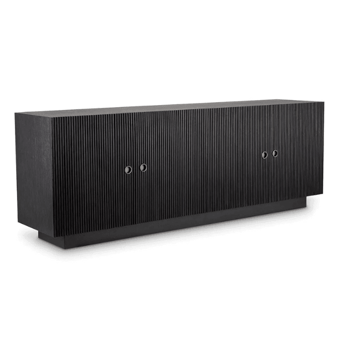 The Dimitrios wooden cabinet is the epitome of elegant and stylish design. This mahogany furniture piece is the perfect addition to any home. It allows you to store your favorite memorabilia and everyday items while adding an exclusive style to your home. The ribbed door panels are inspired by mid-century aesthetics. The four handleless doors operate with a soft-close mechanism.