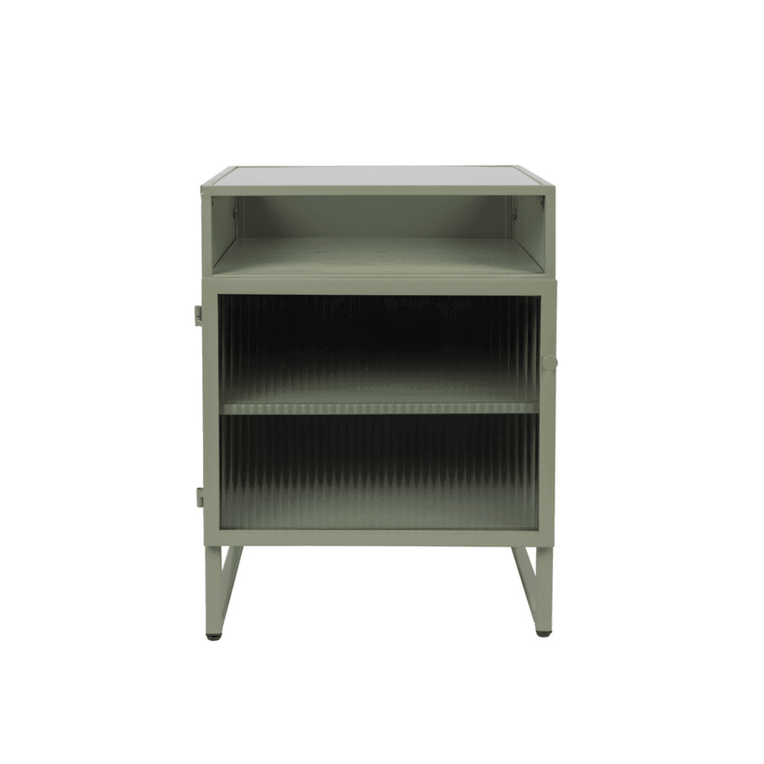 The Herbe cabinet is a striking and eye-catching addition to any interior. Its refreshing, light green shade immediately attracts attention and adds a touch of naturalness to your home. It has a metal frame, slightly frosted glass doors, and multiple shelves. Its unique features include an elegant design and robust construction. Its dimensions are 45x38x58cm.