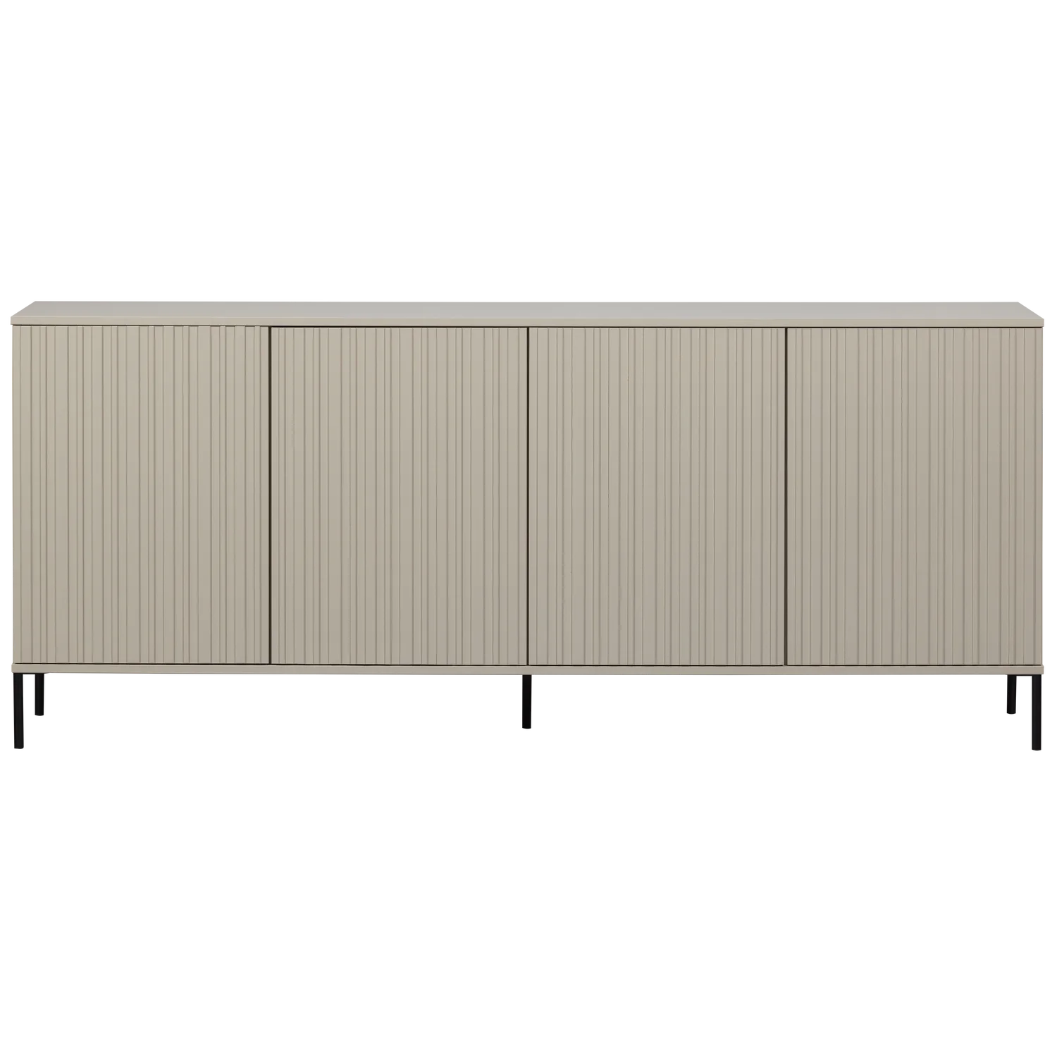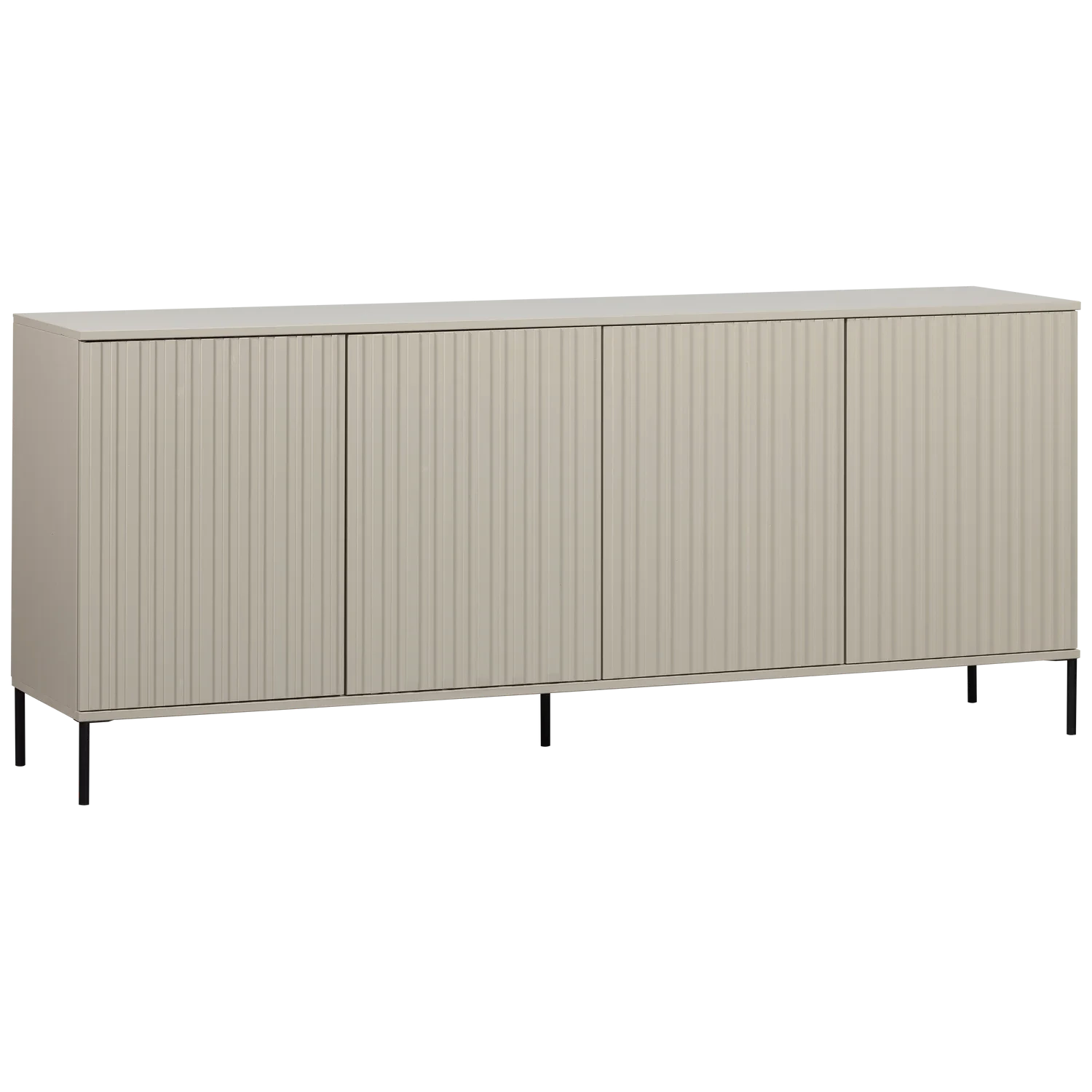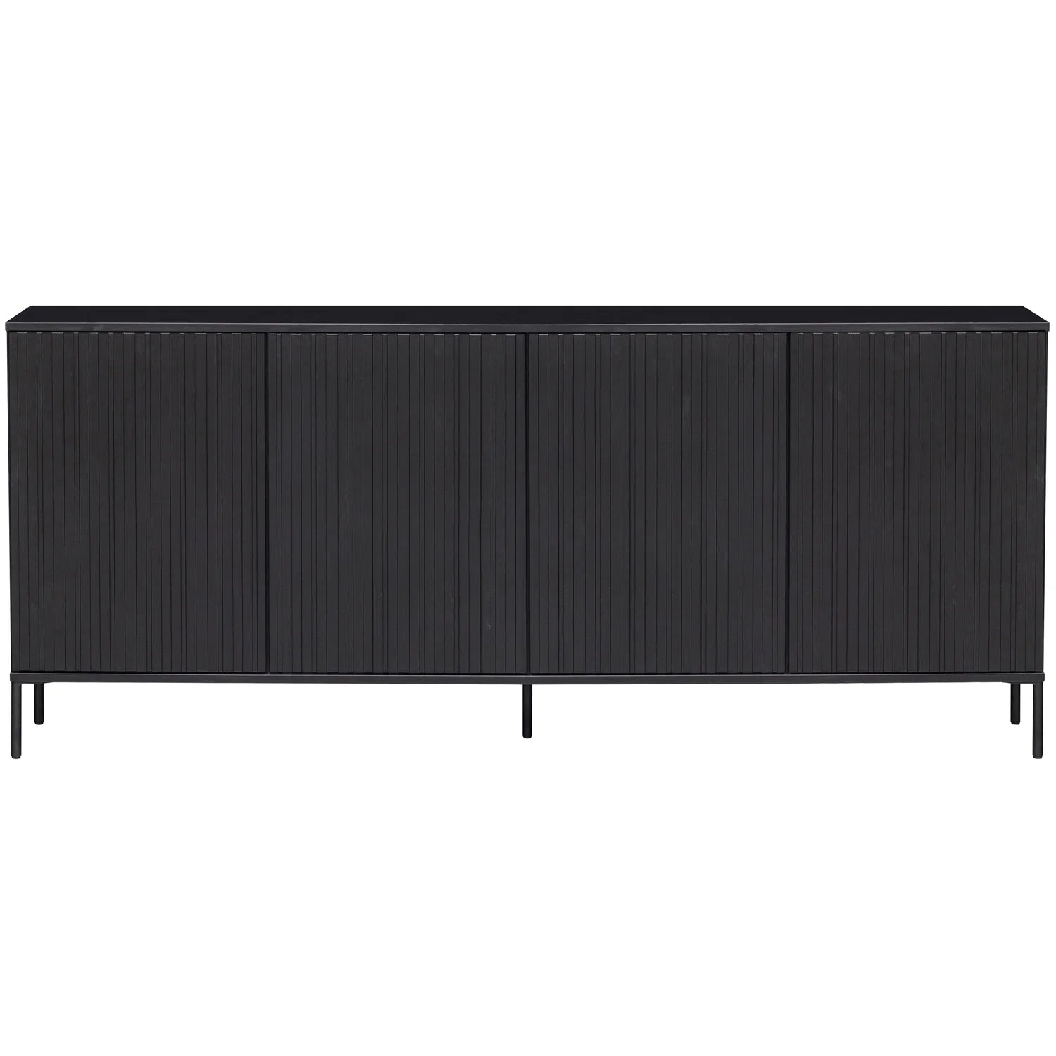 The 200x44x85 cm New Gravure cabinet is an elegant piece of furniture that will be an ideal choice for any style of home. The cabinet has four doors, behind which there are spacious storage spaces. The black metal legs ensure stability and durability, while giving the furniture a modern look. Due to the clean lines, this cabinet will easily fit into any interior. The pine cabinet is available in black and light gray colors.