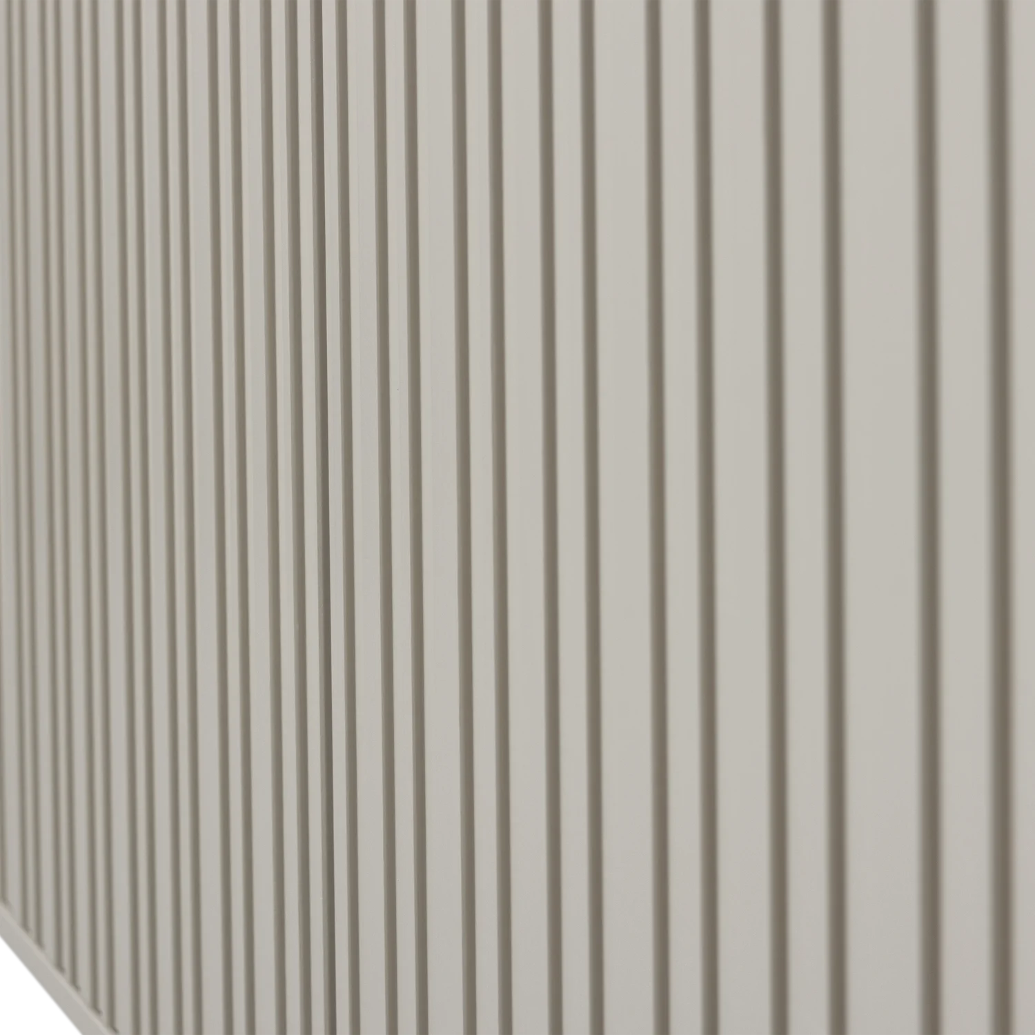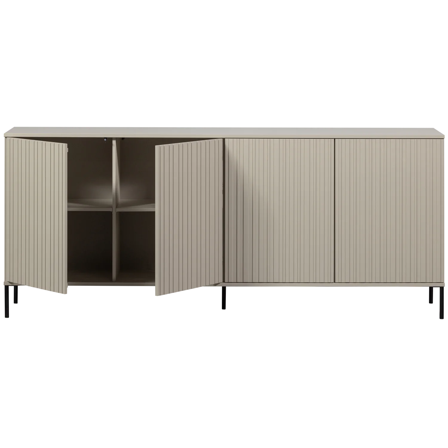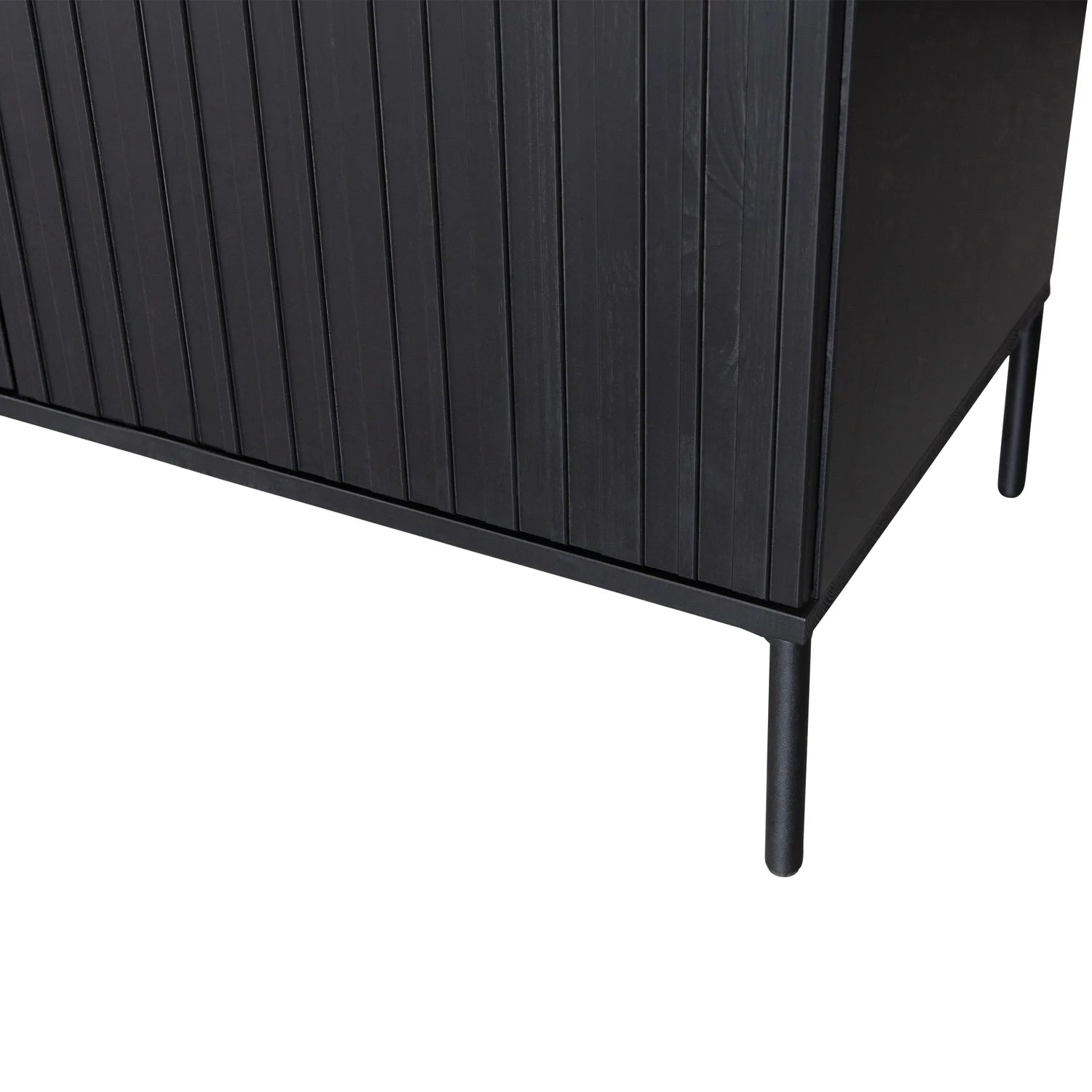 The 200x44x85 cm New Gravure cabinet is an elegant piece of furniture that will be an ideal choice for any style of home. The cabinet has four doors, behind which there are spacious storage spaces. The black metal legs ensure stability and durability, while giving the furniture a modern look. Due to the clean lines, this cabinet will easily fit into any interior. The pine cabinet is available in black and light gray colors.
