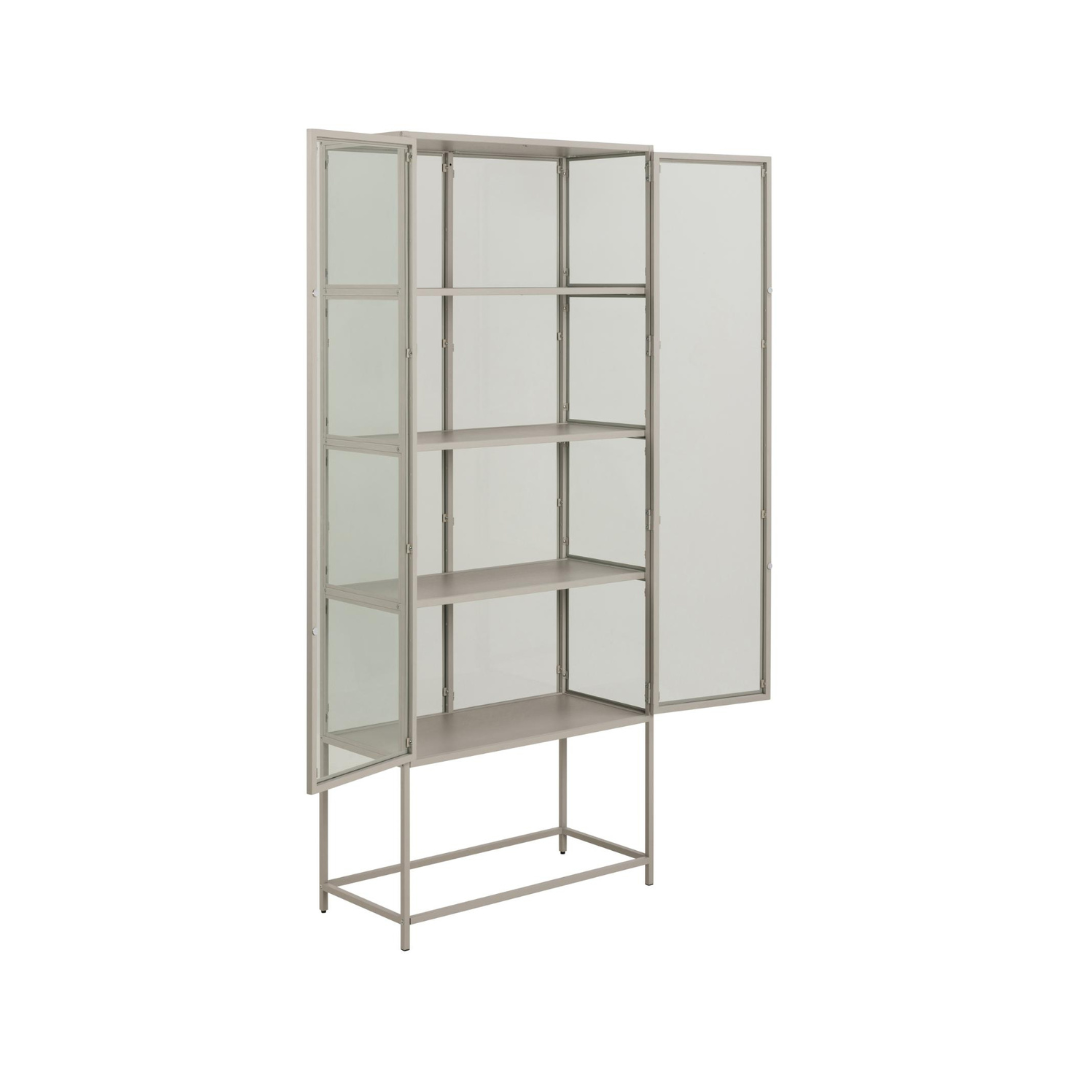 Decorate your room in style with the Seaford cabinet, which offers great storage options. Perfect for the living room or dining room, this glass-door cabinet is perfect for storing your essentials and decorations on its shelves. The black powder-coated metal frame gives the console an industrial feel, while the light gray gives it a modern and minimalist look and ensures stability.