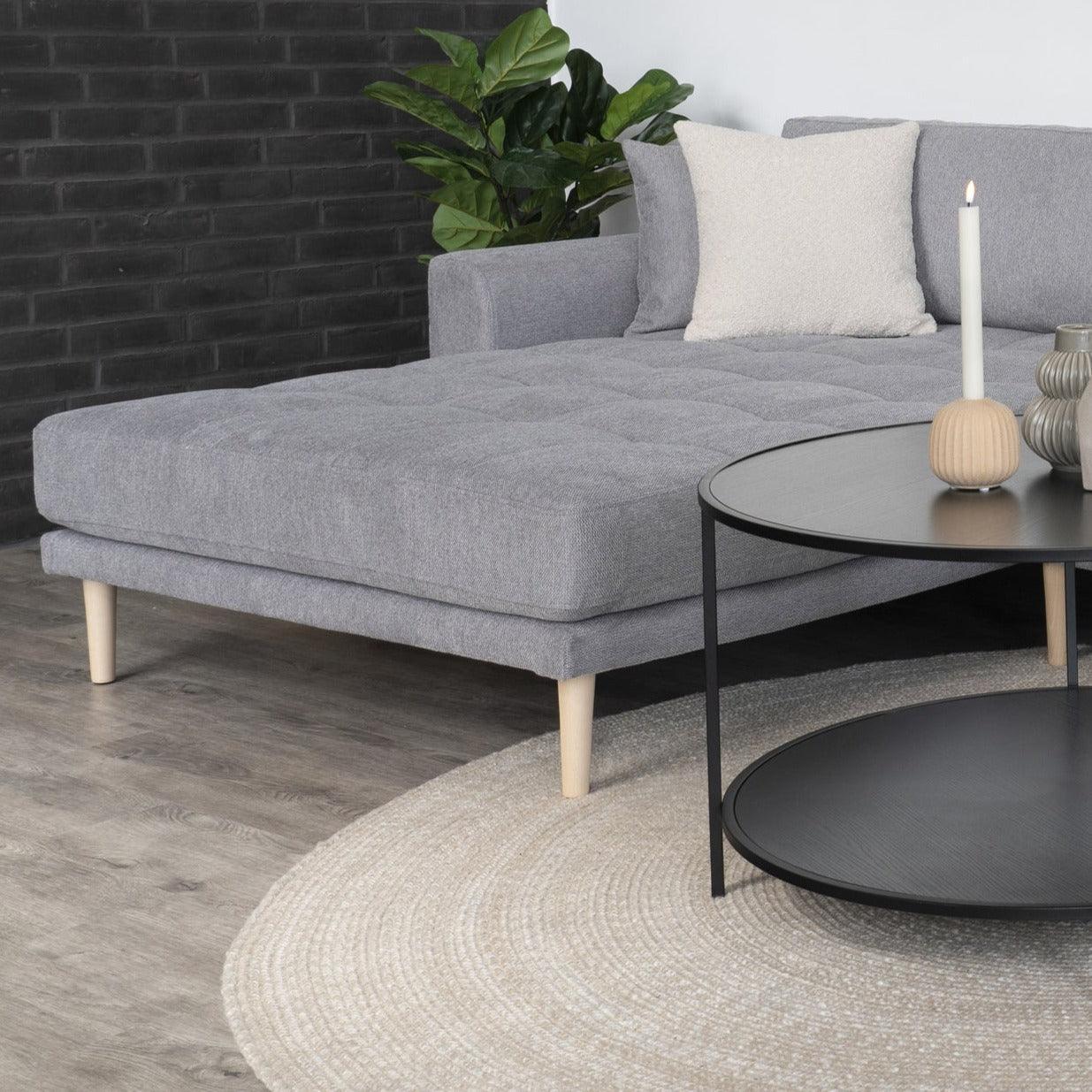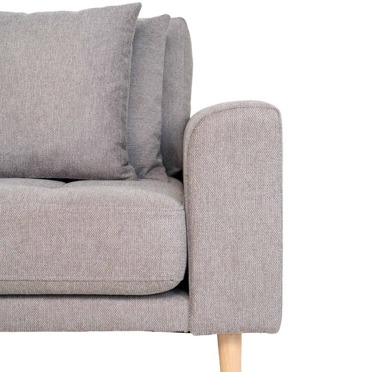 The Lido sofa is the perfect choice for comfortable and stylish seating. The ottoman on the left allows you to comfortably sit and relax. The sofa is made of fabric that is soft and durable, so you can enjoy it for many years. It has four cushions and natural wooden legs that give the sofa an elegant look. The wide range of colors allows it to easily match any living room decor.