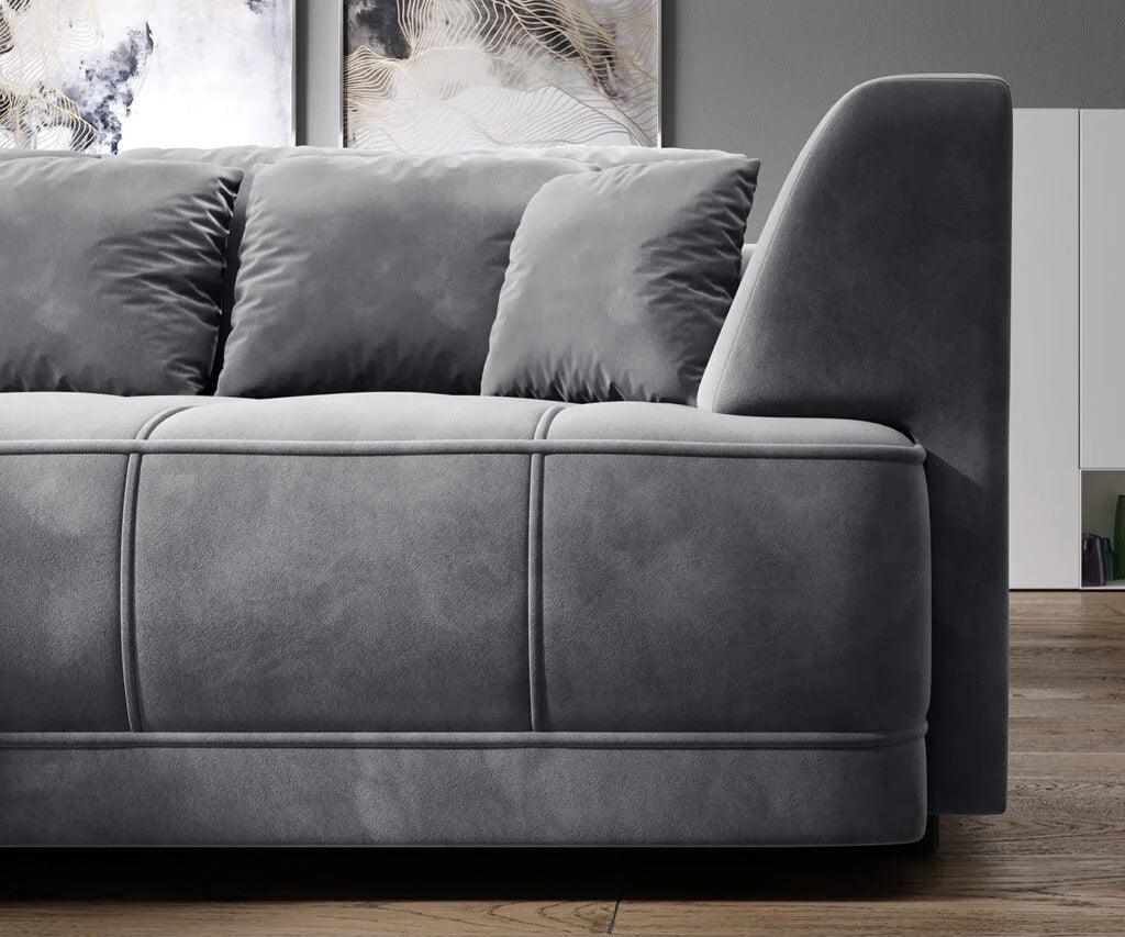 The Tiga sofa is an extremely modern and comfortable piece, featuring an electric seat extension system. The delicate stitching on the seats is an interesting decorative element that highlights the character of the furniture. An additional advantage is the choice between two types of textures and the choice of fabric color from a rich palette of patterns, thanks to which the sofa gets an original style tailored to individual taste.