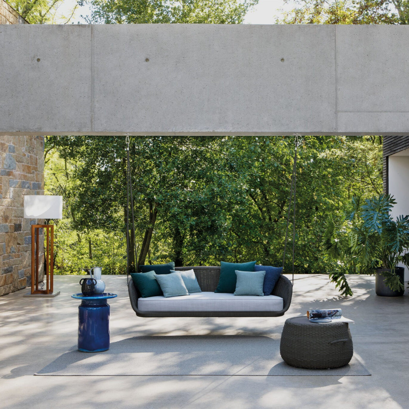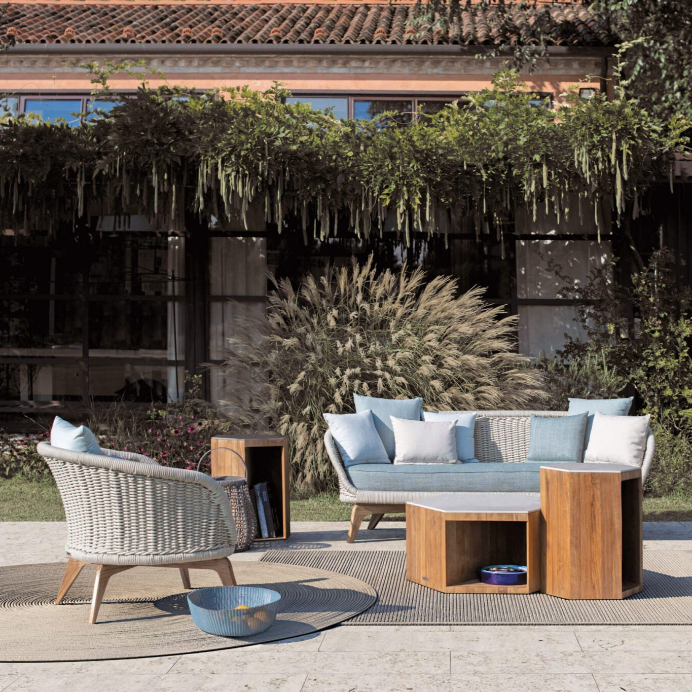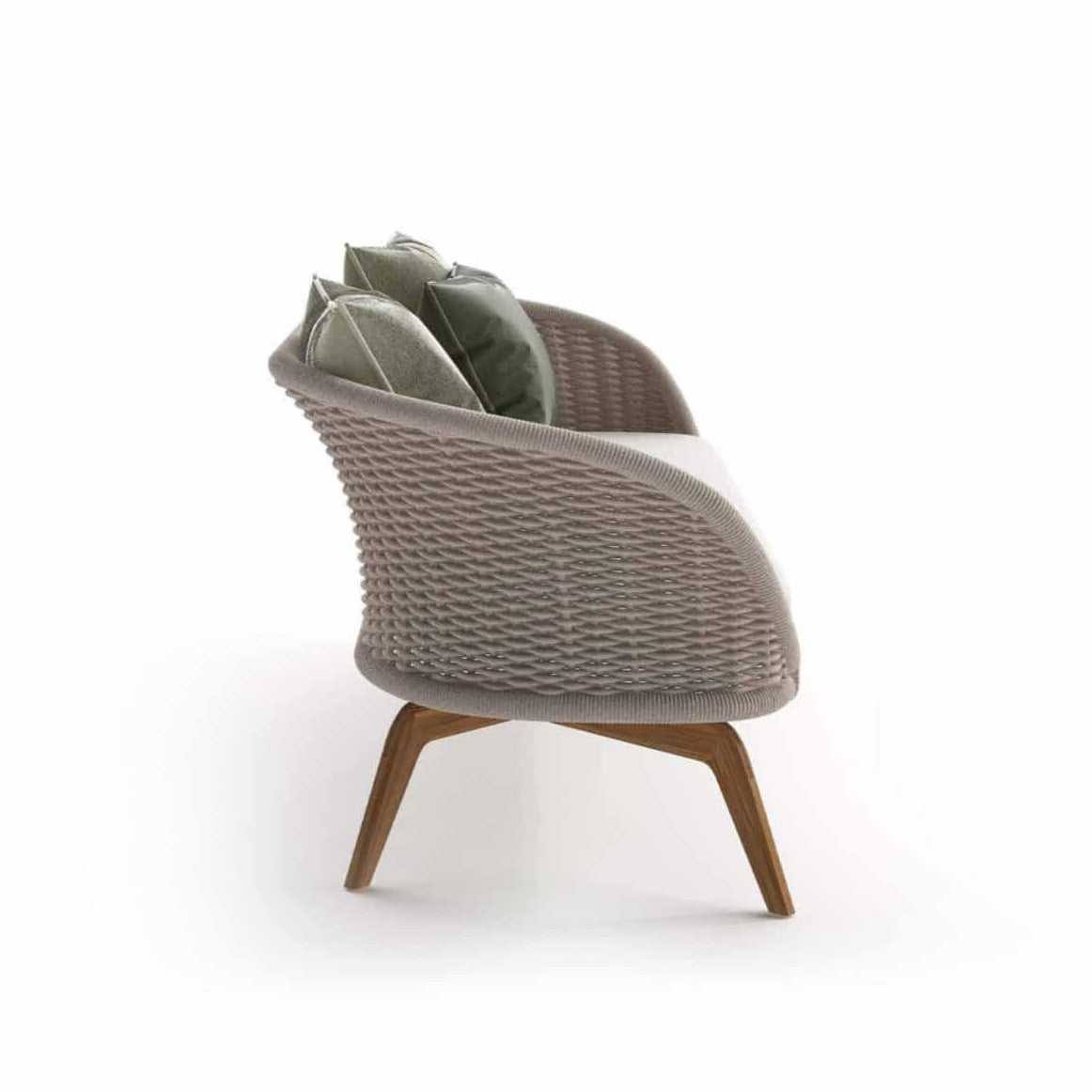 Jellegzetes organikus forma, természetes teakfa alap, a melegség jele erős szobrászati mátrixszal. A Ludo ülőgarnitúra egyrészt formális stílust kínál, másrészt a puha háttámlának köszönhetően meghívást jelent a meghittebb és nyugodtabb, magas fokú pihenésre. Elérhető fix és felfüggesztett kivitelekben.