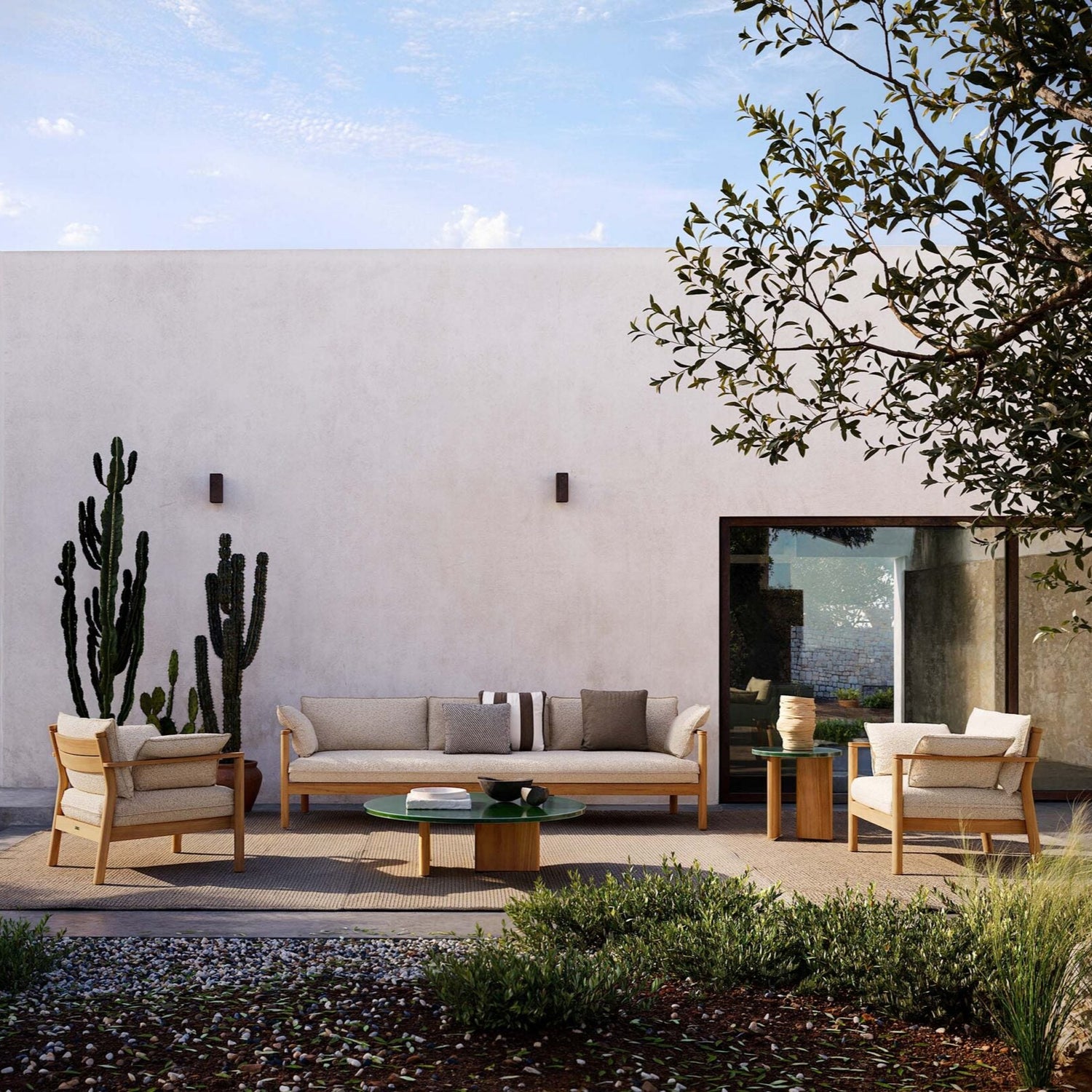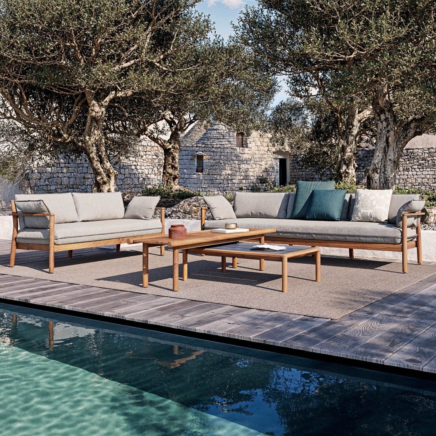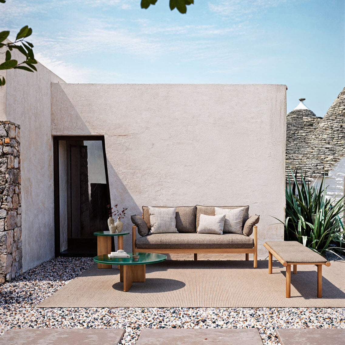 The Panama collection is made unique by its cylindrical teak structure, reinforced by a groove for a characterful detail. The linearity of the structure perfectly matches the softness of the cushions, which give the collection a contemporary and sophisticated character. Available in 2 and 3 seater versions, with dimensions: 176x81x79 / 235x81x79 cm.