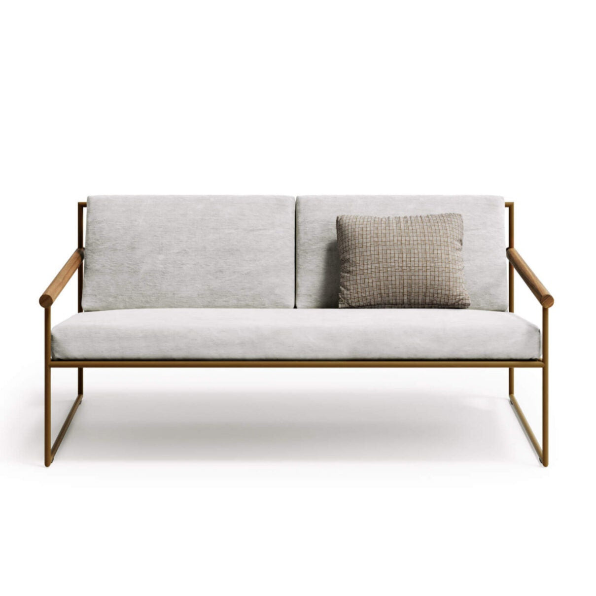 The Pipe sofa collection combines linear design and bold geometric shapes to create a unique visual harmony. Consisting of a 2-seater (162x73x86 cm) and 3-seater (235x73x86 cm) sofa and armchair, each with an epoxy-coated steel frame in a terracotta colour. The backrest, made of hand-woven acrylic rope, adds a sophisticated touch, while the cylindrical teak armrests complete the aesthetic with an emphasis on natural elegance.