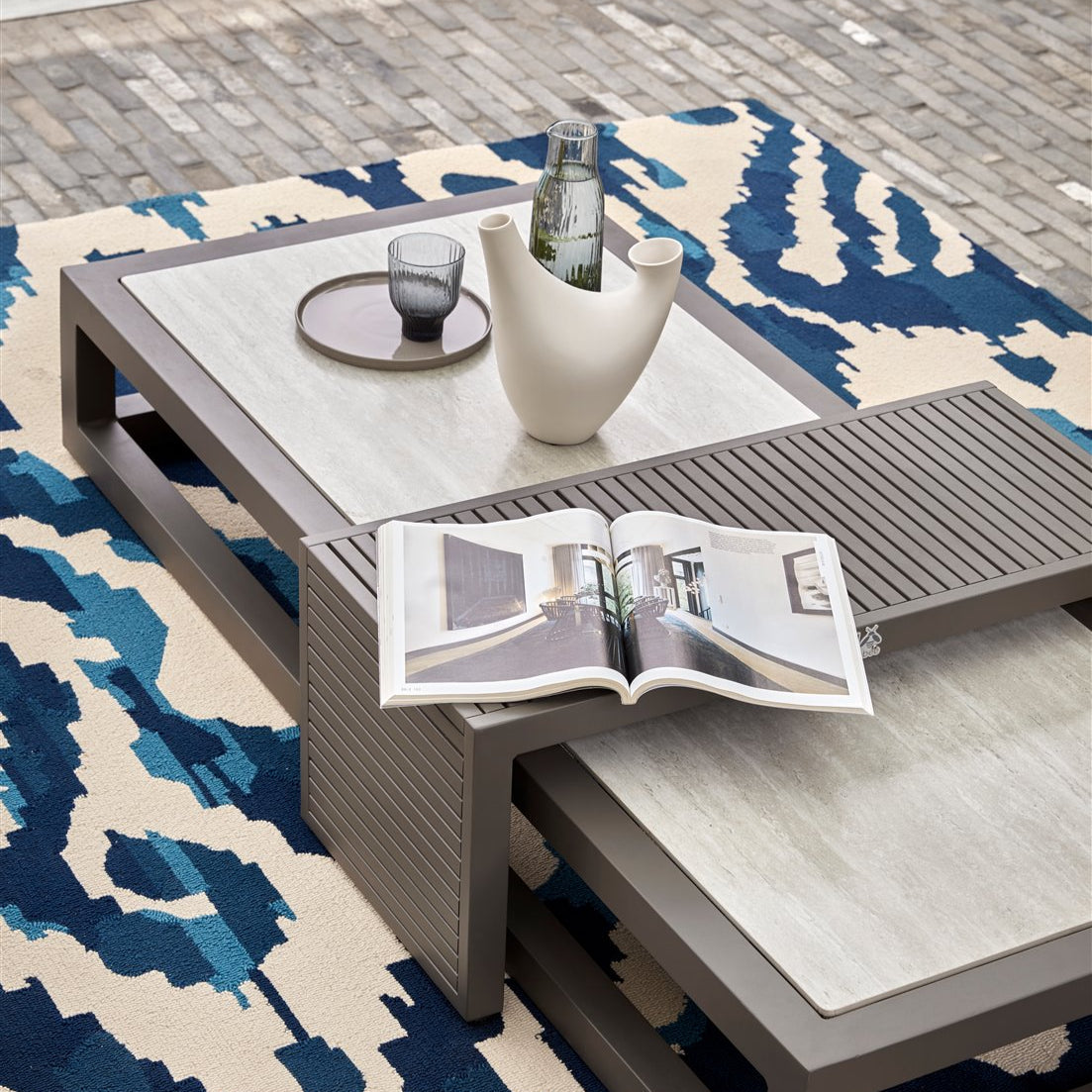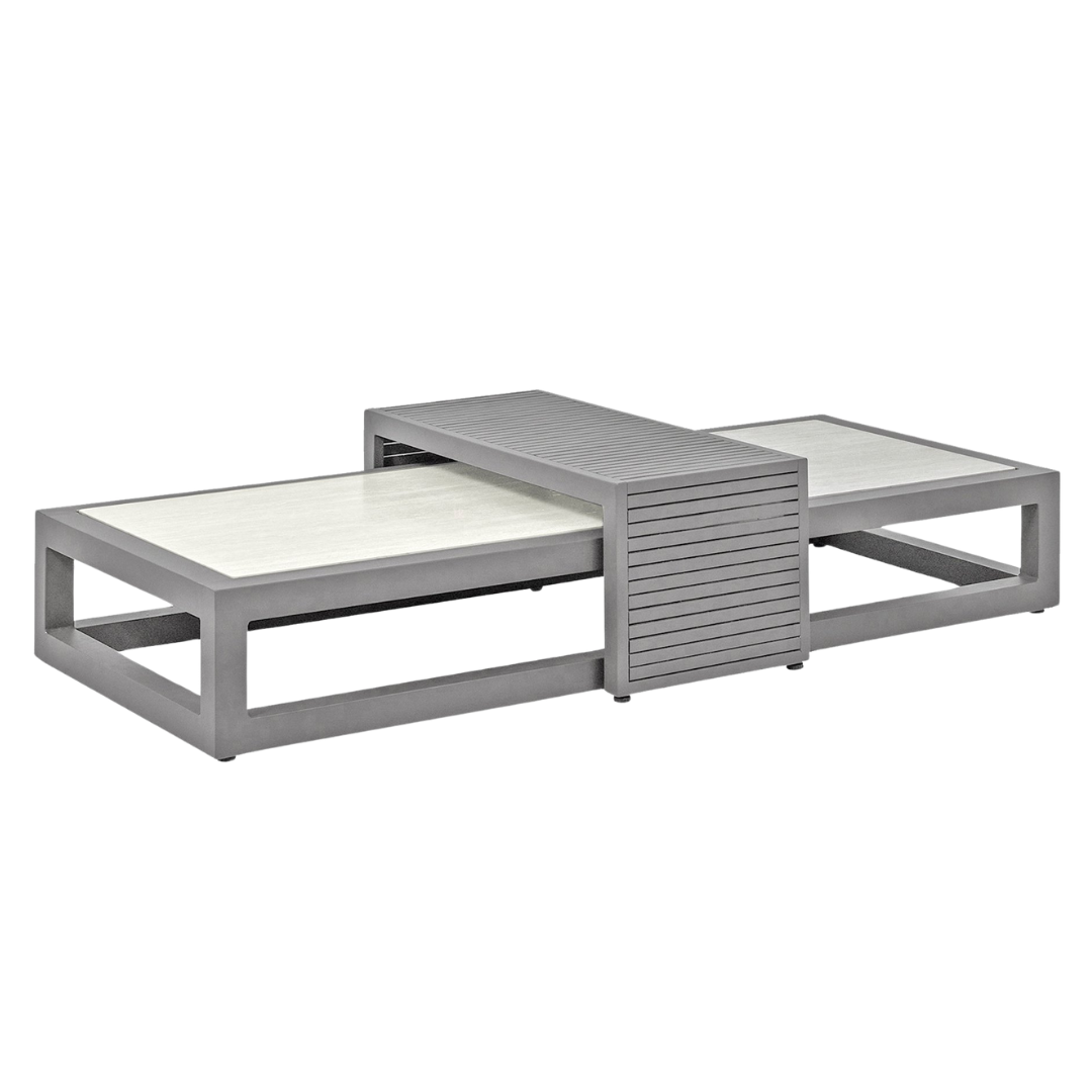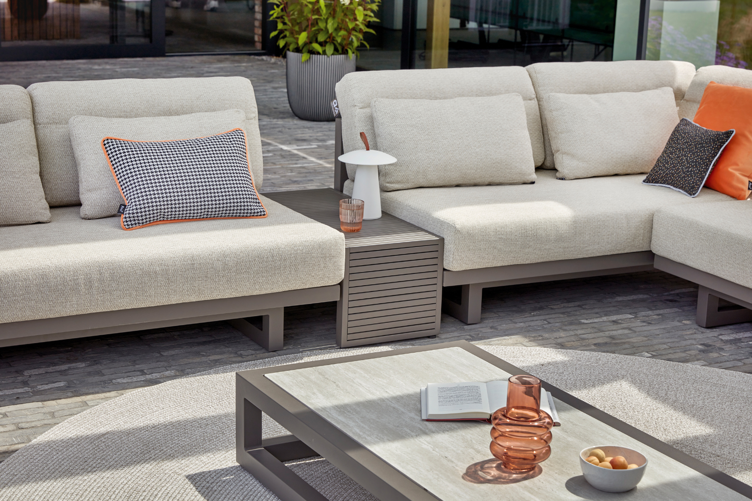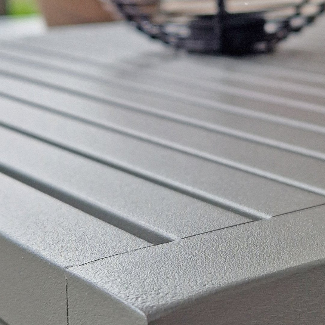 Ha szereted a karcsú és kubista formákat, de nem akarsz semmit sem feláldozni az egyéniségből akkor a Santorini kollekció tökéletes választás. Elegáns alumínium váz, négyszögletes csőváz, meleg taupe színű porszórt bevonattal. A teljesen alumíniumból készült lerakóasztal gyönyörű lécekkel rendelkezik, és tökéletesen rácsúszik a dohányzóasztalra. Ez az asztal azonban két kanapé közé is elhelyezhető, így az ital mindig elérhető közelségben marad, és a készlet játékosabb elrendezést kap. Állítsd össze a Santorinit teljesen olyanra, amilyenre szeretnéd.