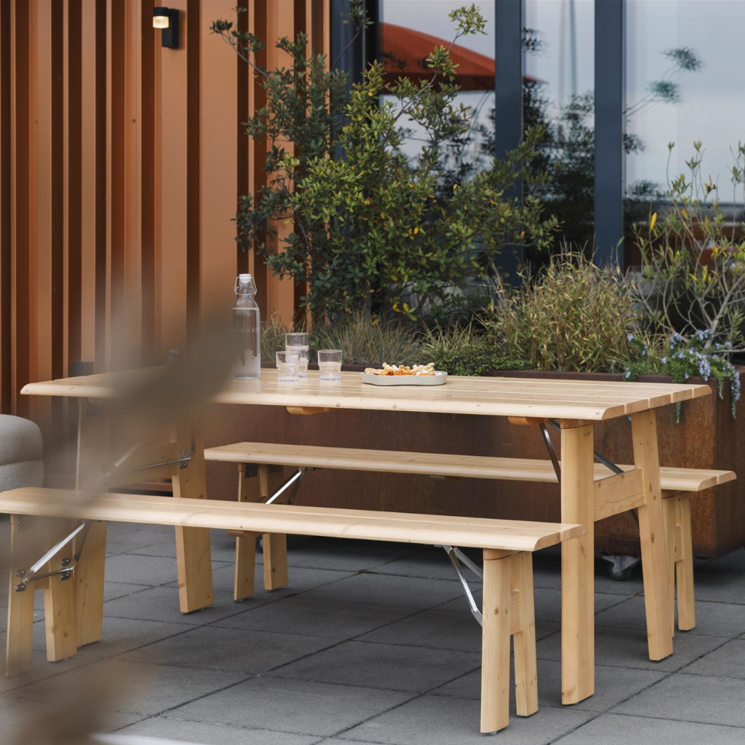 Az Avenue egy letisztult, minimalista stílusú, natúr vagy zsályazöld színű, fenyőfából készült összecsukható pad, mely ideális méretű a kollekció asztalához. Egyszerű és elegáns megjelenésének köszönhetően bármilyen kültéri környezetbe illeszkedik. Az anyaga miatt rendkívül tartós és hosszú élettartamú, így garantáltan sokáig szolgál majd. Összecsukható, így tárolása és használata rendkívül egyszerű. Kombináld az Avenue kollekció összecsukható asztalával a teljes összkép érdekében. Szettben is megvásárolható.