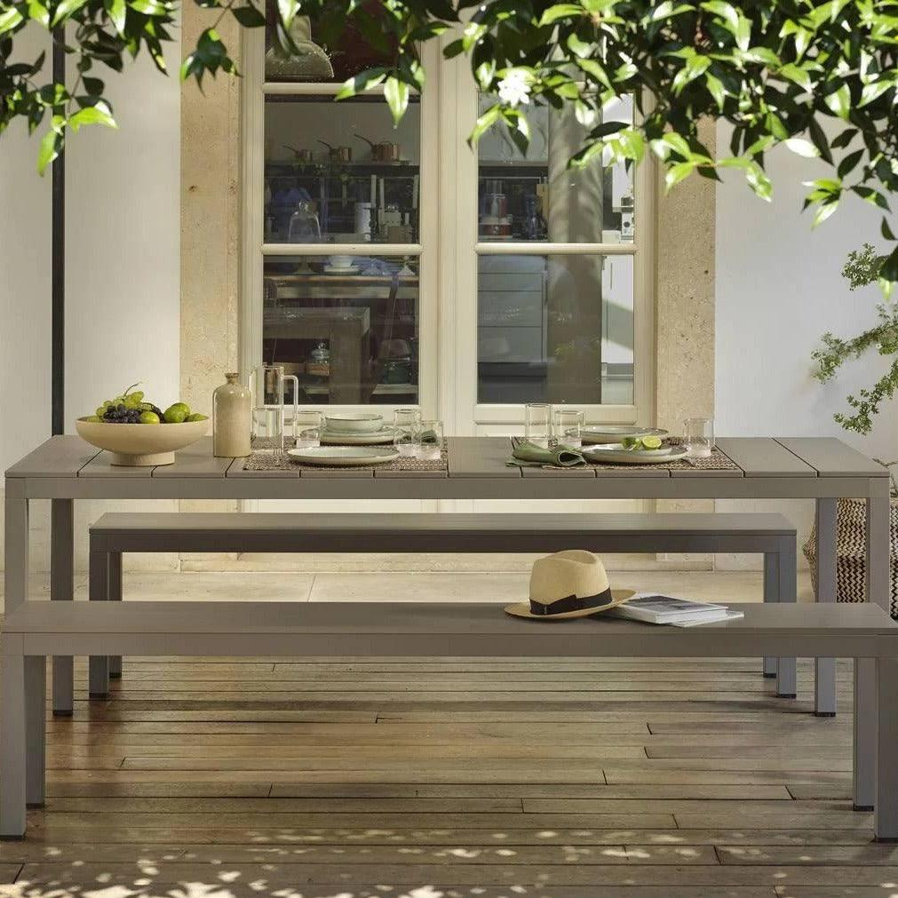 Ez a gyönyörű kerti asztal tökéletes választás azoknak, akik szeretik a modern és elegáns stílust. Az asztal anyaga alumínium, ami nem csak tartós, de könnyű is, így könnyen mozgatható. Az állítható lábak lehetővé teszik, hogy az asztal mindig tökéletesen illeszkedjen a környezetébe. A padokkal együtt ez a kerti asztal ideális helyszíne lehet egy családi pikniknek vagy baráti összejövetelnek.