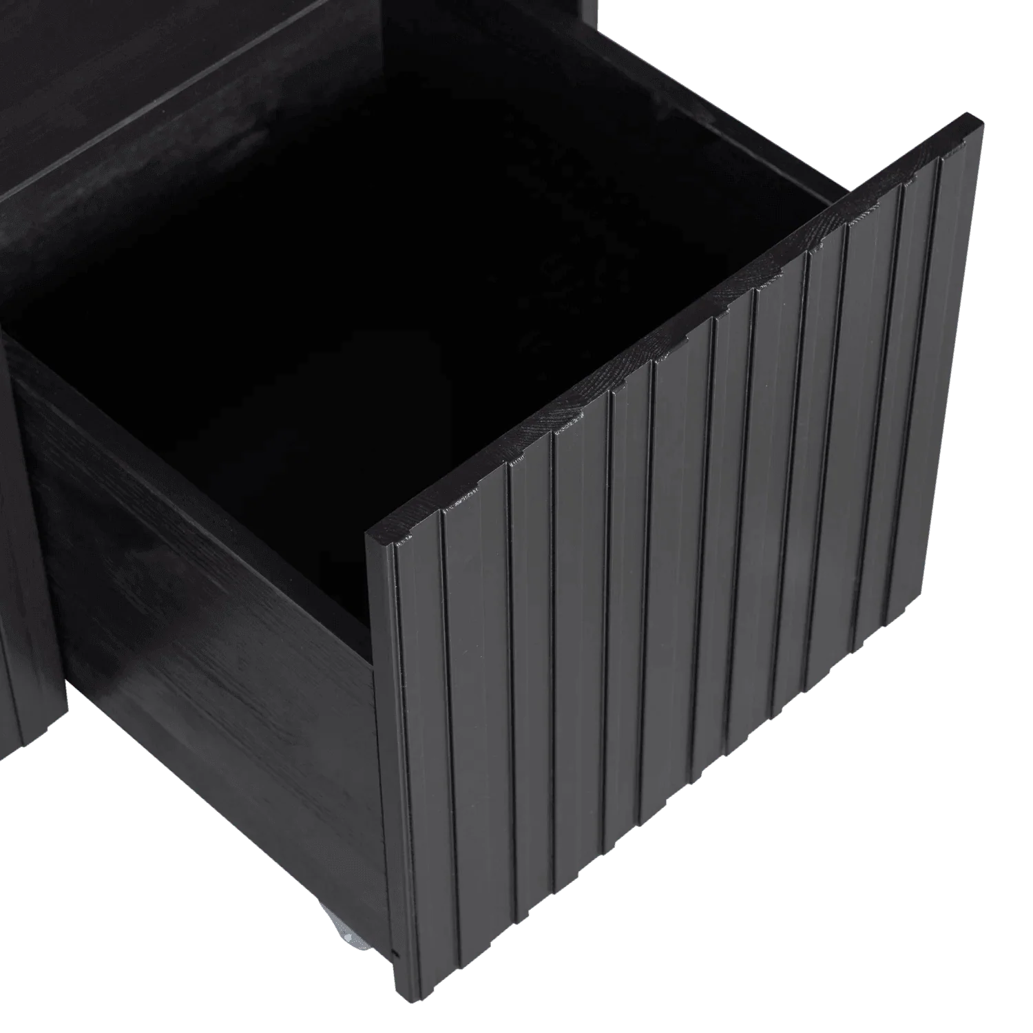 A sikeres Gravure sorozat új köntösben! Ez a New Gravure komód, amely padként is használható, a holland WOOOD belsőépítészeti márka Exclusive kollekciójából származik. Nagy méretű és nagy teherbíró képességgel rendelkezik. Praktikus tárolóhelyként és funkcionális ülőhelyként is tökéletes! A fenyőből készült bútordarab fekete és világosszürke színekben érhető el.