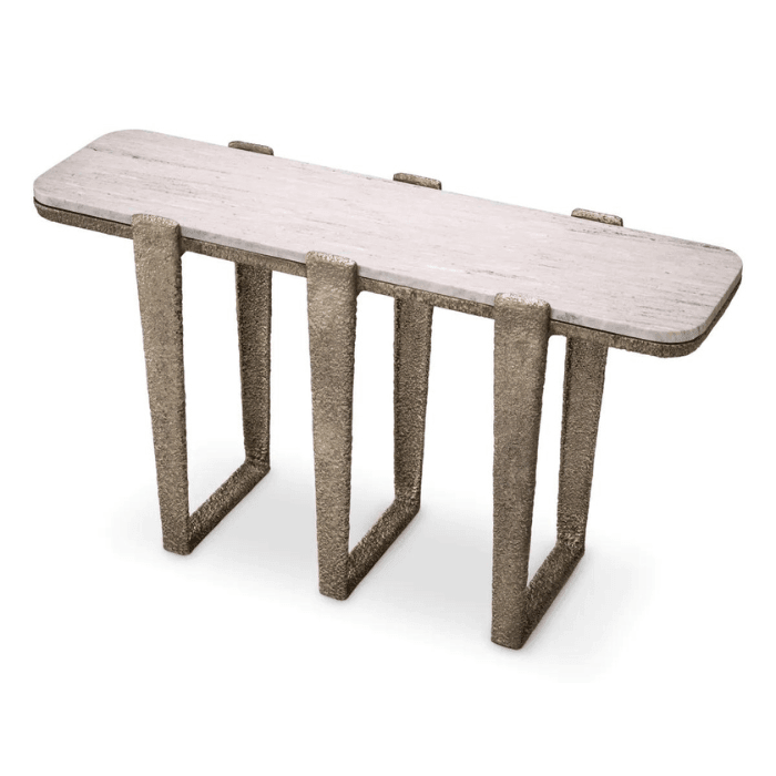 The Eichholtz Orinda Marble Console Table exudes antique elegance, making it the perfect addition to sophisticated spaces. The craftsmanship and exquisite craftsmanship are evident in the vintage brass legs and exclusive marble top that define this special piece. Its versatile design makes it a perfect fit for classic or transitional interiors. Place it in your living room or bedroom to create an elegant focal point. The Orinda Marble Console Table is the perfect choice for those who appreciate timeless beauty.