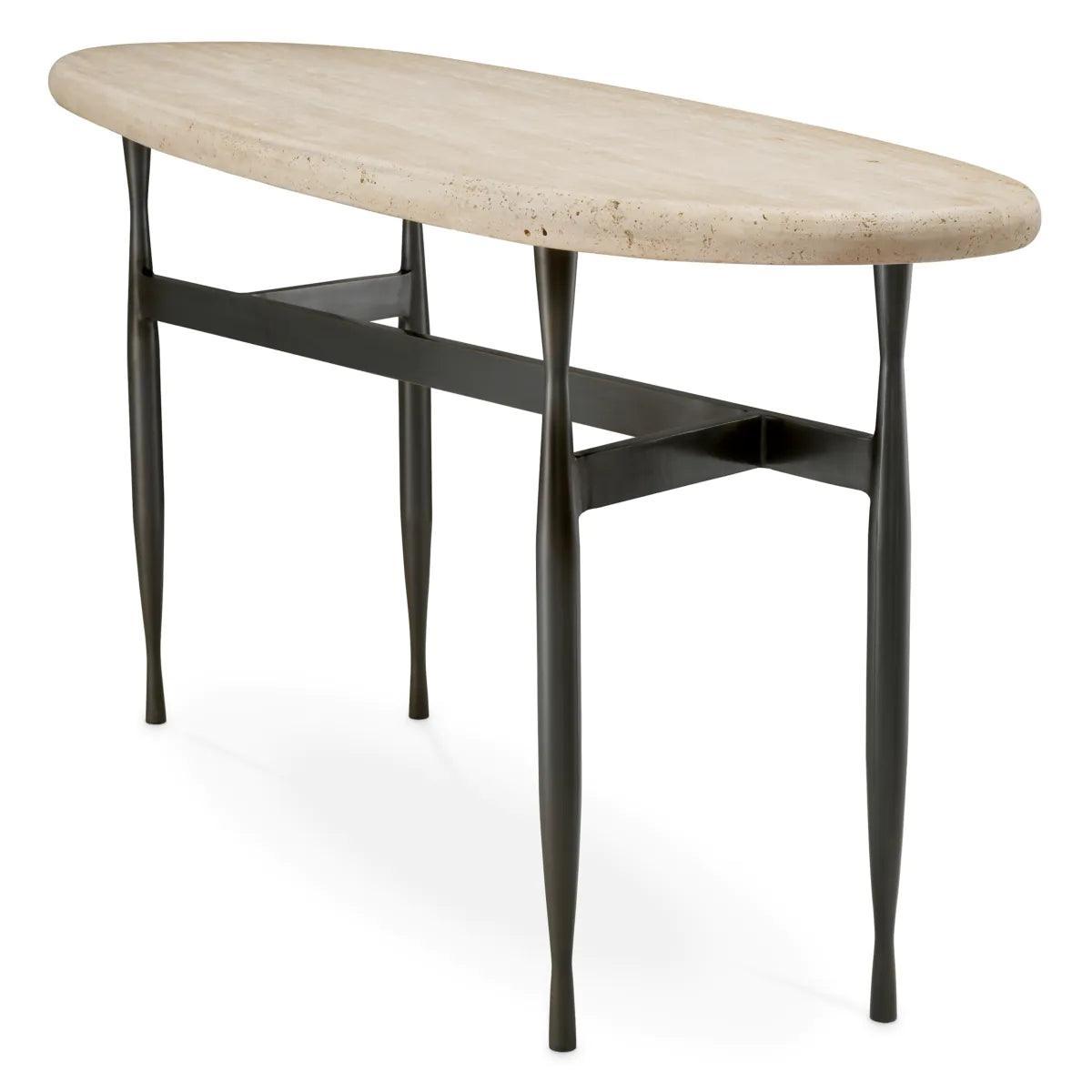 Introducing the Palermo Limestone Console Table, the perfect blend of timeless elegance and modern sophistication. Crafted with care, its bronze-plated base exudes warmth and character. The travertine limestone table top adds a luxurious touch to the table's appearance, and its natural grain and texture make it a stunning addition to any space. Place it in your entryway, hallway, living room, or even your bedroom, where its sophisticated design will make a statement.
