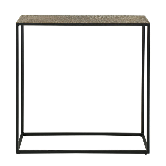 A 75x25x75 cm-es Zistra 262 konzolasztal egy modern, és letisztult megjelenésű bútordarab, amely bármely nappali, előszoba, vagy folyosó praktikus, és stílusos darabja lehet. Az antikolt bronz színű asztallap, és a vékony, keretes fém váz minimalista dizájnt kölcsönöz, így ez a kompakt mérettel rendelkező modell bármely belső térben kiválóan mutat.