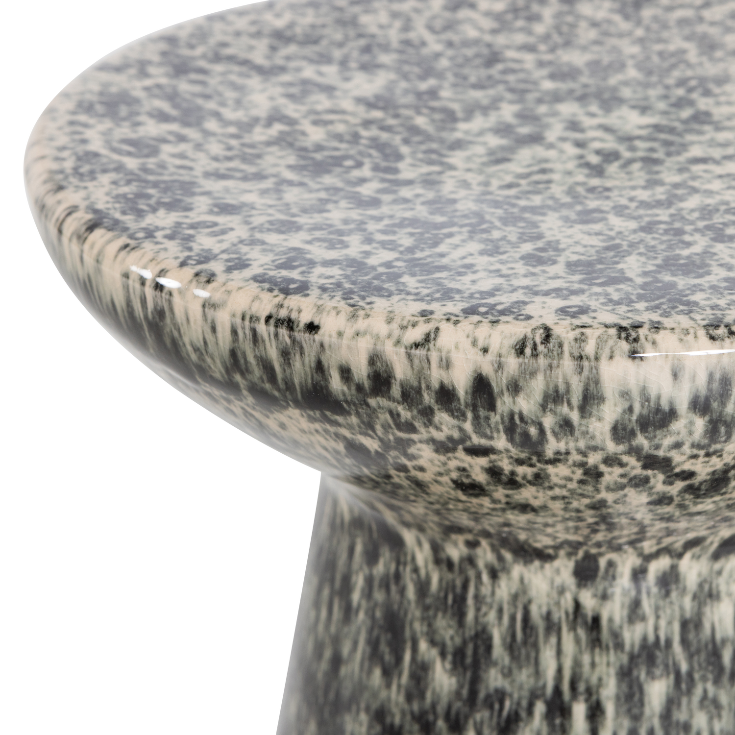 A vtwonen márka Fleck bútora a művészi formavilág és a tartós anyaghasználat mesteri ötvözete. A különleges mázzal bevont kerámia nemcsak vizuális fókuszpontot teremt, hanem egyedi textúrát is visz az enteriőrbe. A magas hőfokon égetett agyagból készült asztal sima felülete elegáns ragyogást kölcsönöz a helyiségnek. Kompakt méreteinek és 35 cm-es átmérőjének köszönhetően multifunkcionálisan használható: tökéletes lerakóasztalként a kedvenc fotelünk mellett, vagy stílusos éjjeliszekrényként a hálószobában. A 43 cm-es magasság ideális elérést biztosít a mindennapi tárgyak számára, miközben a szerkezet stabilitása garantálja a praktikus használatot.