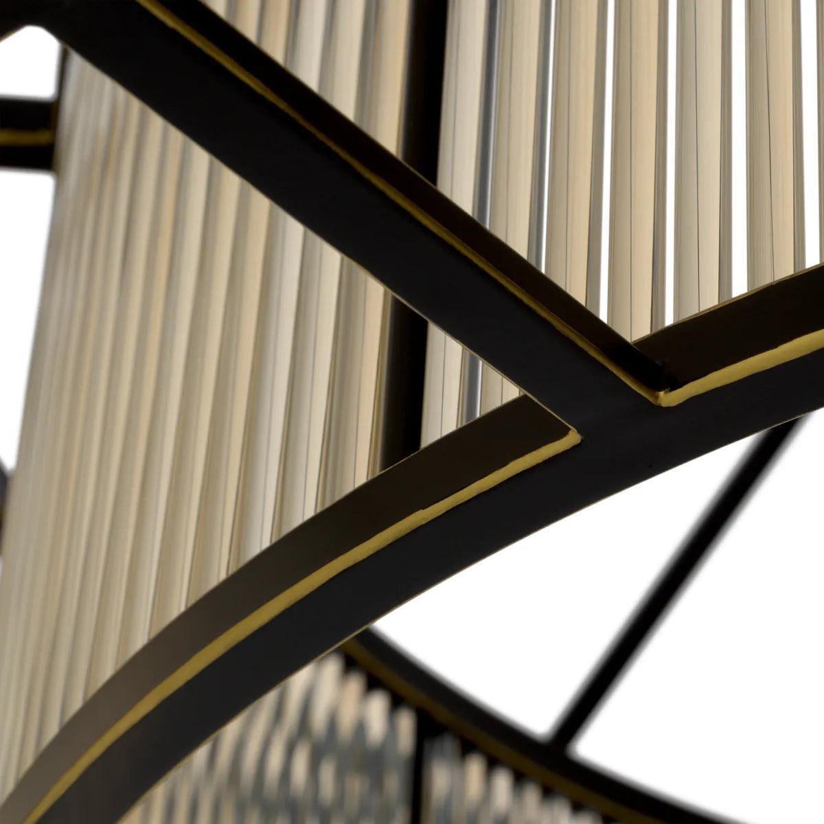 Elevate your living space with the Bernardi ceiling lamp, featuring a sophisticated bronze finish and vintage glass. This Eichholtz exclusive brings 1920s style to modern interiors, seamlessly blending luxury and history into lighting solutions. Available in multiple sizes, this piece measures 110cm in diameter. It has space for 10 bulbs.
