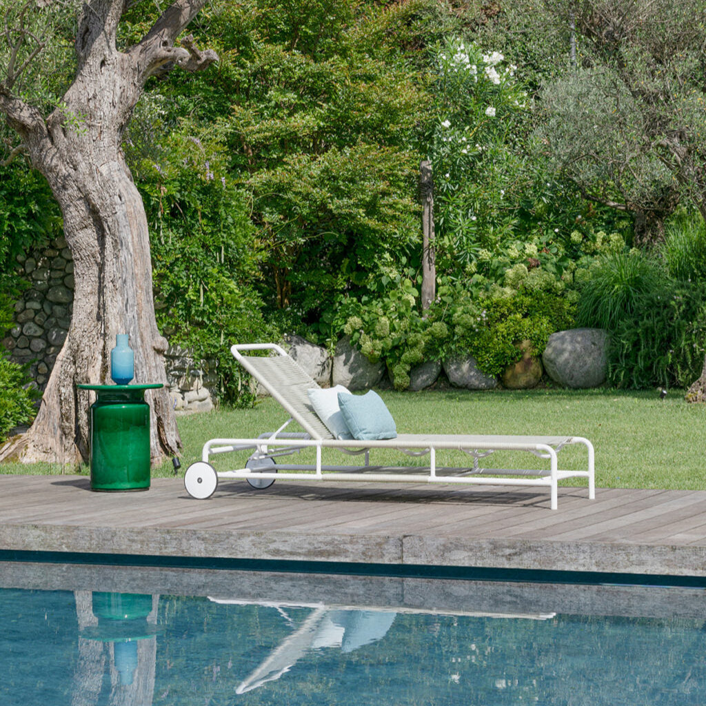 A friss levegő illata és az időtlen ízlés: ez az az inspiráció, amely egyesíti és jellemzi az Air kollekciót. A tömör fehér vagy grafit alumínium váz könnyedén áramlik a tiszta, geometrikus vonalvezetéssel, amelyet kézzel készített szövés díszít, amely az ülőlapot alkotja, és eleganciát kölcsönöz az alján lévő, praktikus polcnak.