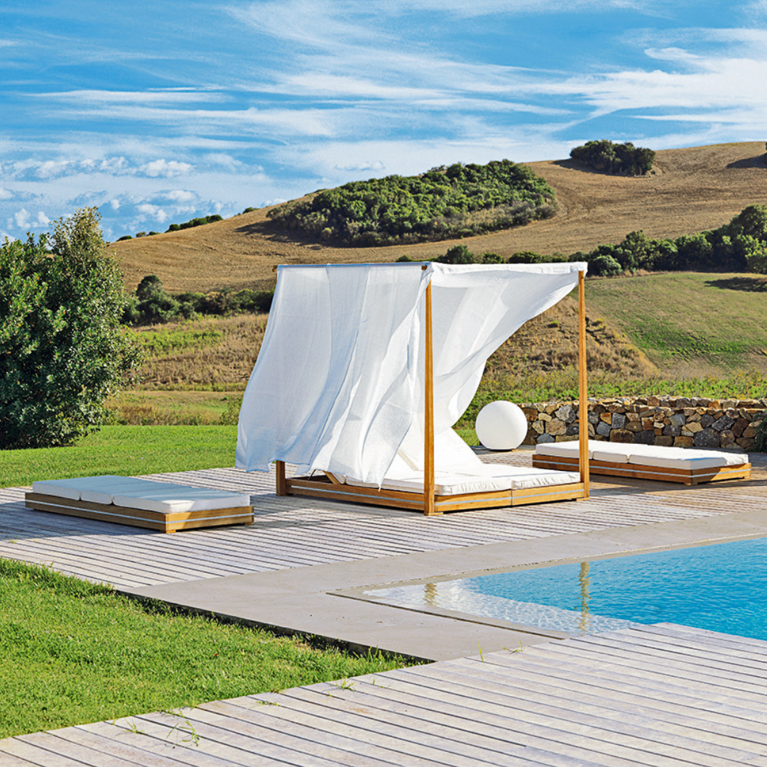 Add personalized comfort to your outdoor space with our customizable Kilt garden coffee table, which has an organic and modern look. Designed for relaxed moments outdoors, this table pairs perfectly with other members of the collection or can be used as a standalone piece for a flexible outdoor aesthetic. Made of teak wood, it comes in 2 shades. Dimensions: 71x71x35 cm.