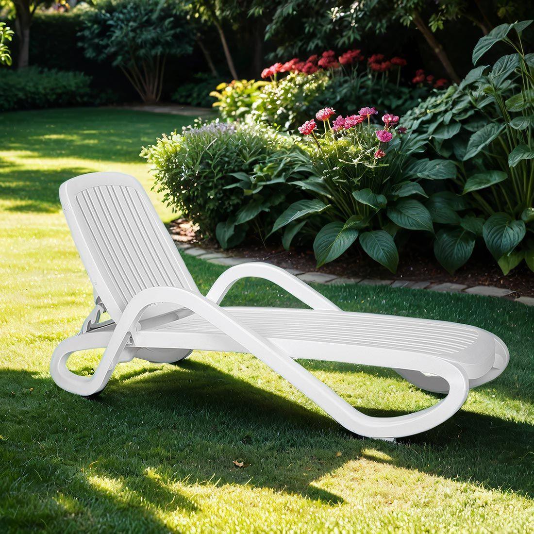 The Nardi Eden sun lounger has a backrest that can be adjusted to four different positions. It is stackable with non-slip feet. It is made of polypropylene tube frame with UV additives and uniform color.