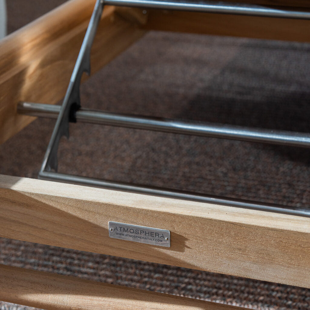 A Panama napozóágy masszív teakfa ülőlappal kerül bemutatásra, amely mindegyike rácsos, fogantyúval ellátott a szállítás megkönnyítése érdekében. A konfigurációt az opcionális párnázott matrac teszi teljessé, amely a kollekció összes szövetében kapható. A kerekek és a fogantyú biztosítja a kényelmet és a praktikumot bármilyen kültéri környezetben, a kerttől a teraszig.