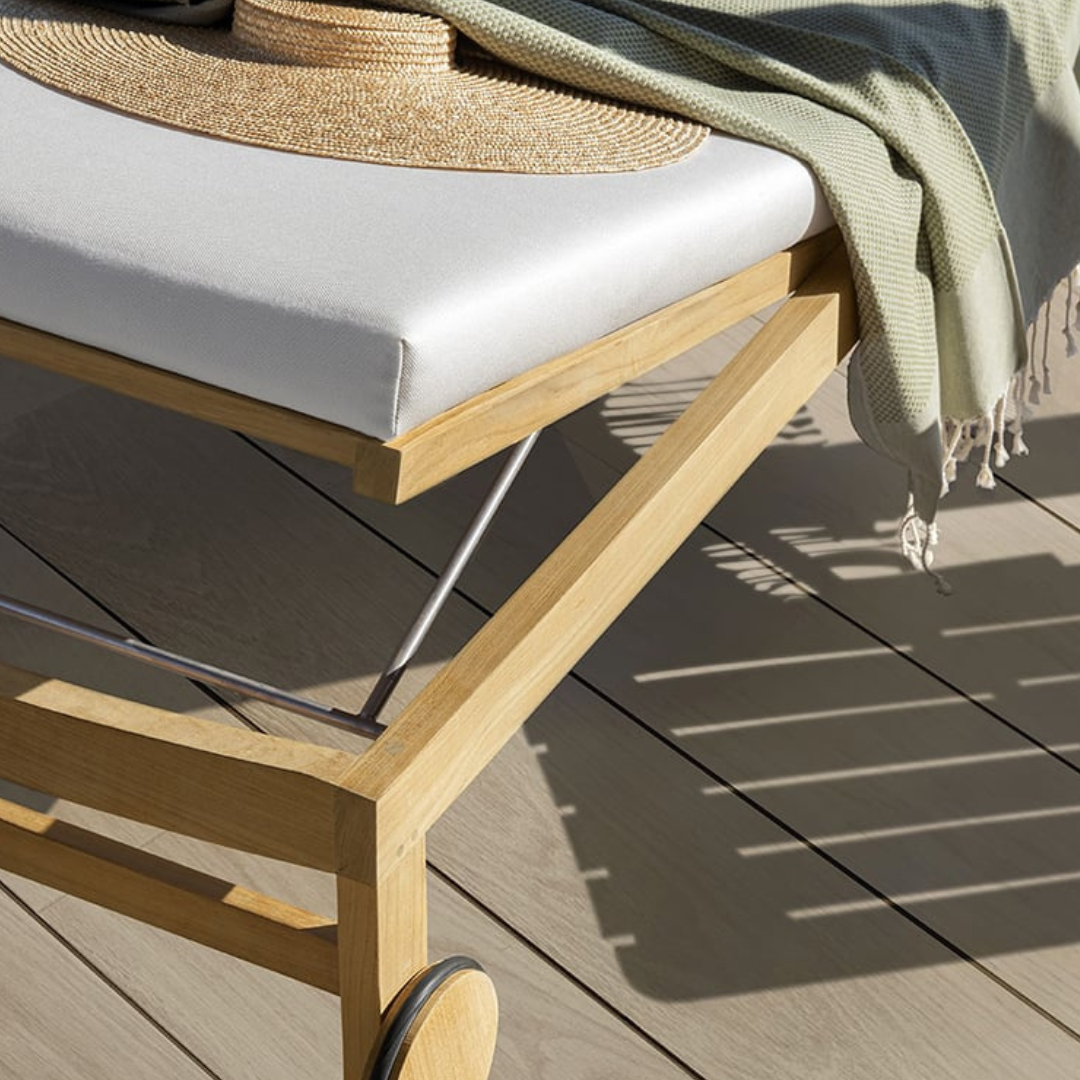 Add personalized comfort to your outdoor space with our customizable Kilt garden coffee table, which has an organic and modern look. Designed for relaxed moments outdoors, this table pairs perfectly with other members of the collection or can be used as a standalone piece for a flexible outdoor aesthetic. Made of teak wood, it comes in 2 shades. Dimensions: 71x71x35 cm.