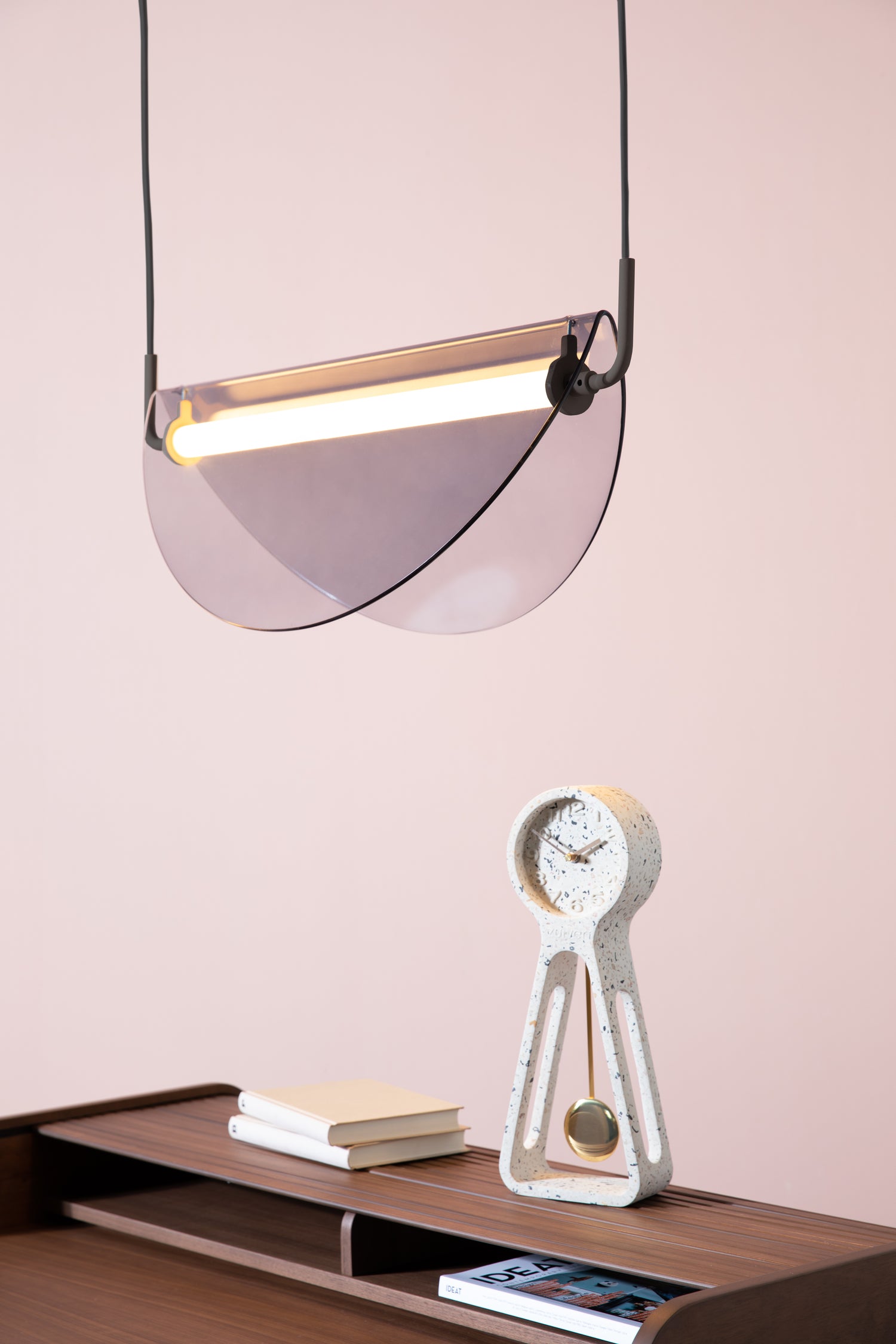 This clock combines modern and industrial styles. The unique combination of concrete material and aluminum clock hands makes this product truly special. The concrete surface is painted, making it even more durable and resistant. The pendulum movement creates a unique and calming effect, which is perfect for a desk clock.