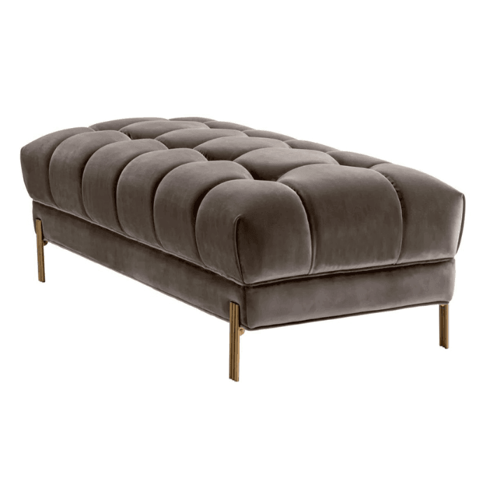 A Sienna bársony pad a kényelem és a stílus remek párosítása. Ez a modern, elegáns, hosszú ülőalkalmatosság bársony kárpitozással készült. A szálcsiszolt sárgaréz bevonatú lábak pedig extra csillogást adnak luxus megjelenéséhez. Tökéletes kiegészítője otthonodnak!
