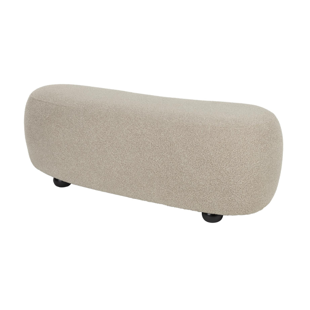 The beige bouclé fabric gives this footstool a luxurious feel. It is made of a Martindale 25000 rated material, which ensures high durability and hardwearing. The special shape gives the footstool a unique and stylish look that stands out from the traditional furniture. A sofa and pouf are also available, so you can make your home and relaxation even more comfortable.