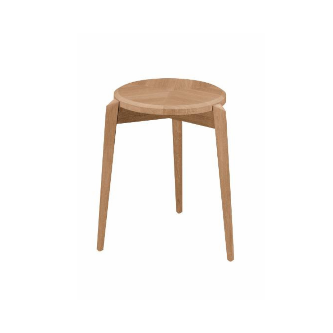 A Skovby 840 ülőke ötlete és dizájnja maradék fadarabokból született. Kerek és ellipszis alakú asztalokból kivágott darabokat egyesítettek, hogy egy rakásolható és fenntartható széket hozzanak létre, amely teljes egészében a gyártás során megmaradt darabokból készült. A három illesztési darab dinamikus és érdekes mintázatot kölcsönöz az ülőfelületnek, mely a merész lábakkal kombinálva egyedi megjelenést ért el. Használhatod az ülőkét extra ülőhelyként, kisasztalként, vagy egyszerűen csak egy gyönyörű dísztárgyként.