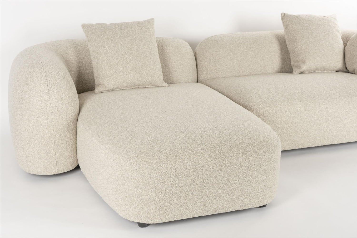 A Perry sarokkanapé a jellegzetes, lágy designt ötvözi a tágas pihenőfelülettel. A balos kivitelű, nagyméretű fekvőrész hosszú pihenésre hívogat, miközben a lekerekített formák és a mély ülőfelület kényelmes egységet alkotnak. A bézs kárpitozás nyugodt, időtálló megjelenést kölcsönöz a bútornak, amely így könnyedén illeszkedik bármilyen stílusú nappaliba. Moduláris felépítése légies hatást kelt, a széles kartámaszok és a díszpárnák pedig a nappali kényelmes központi elemévé teszik.