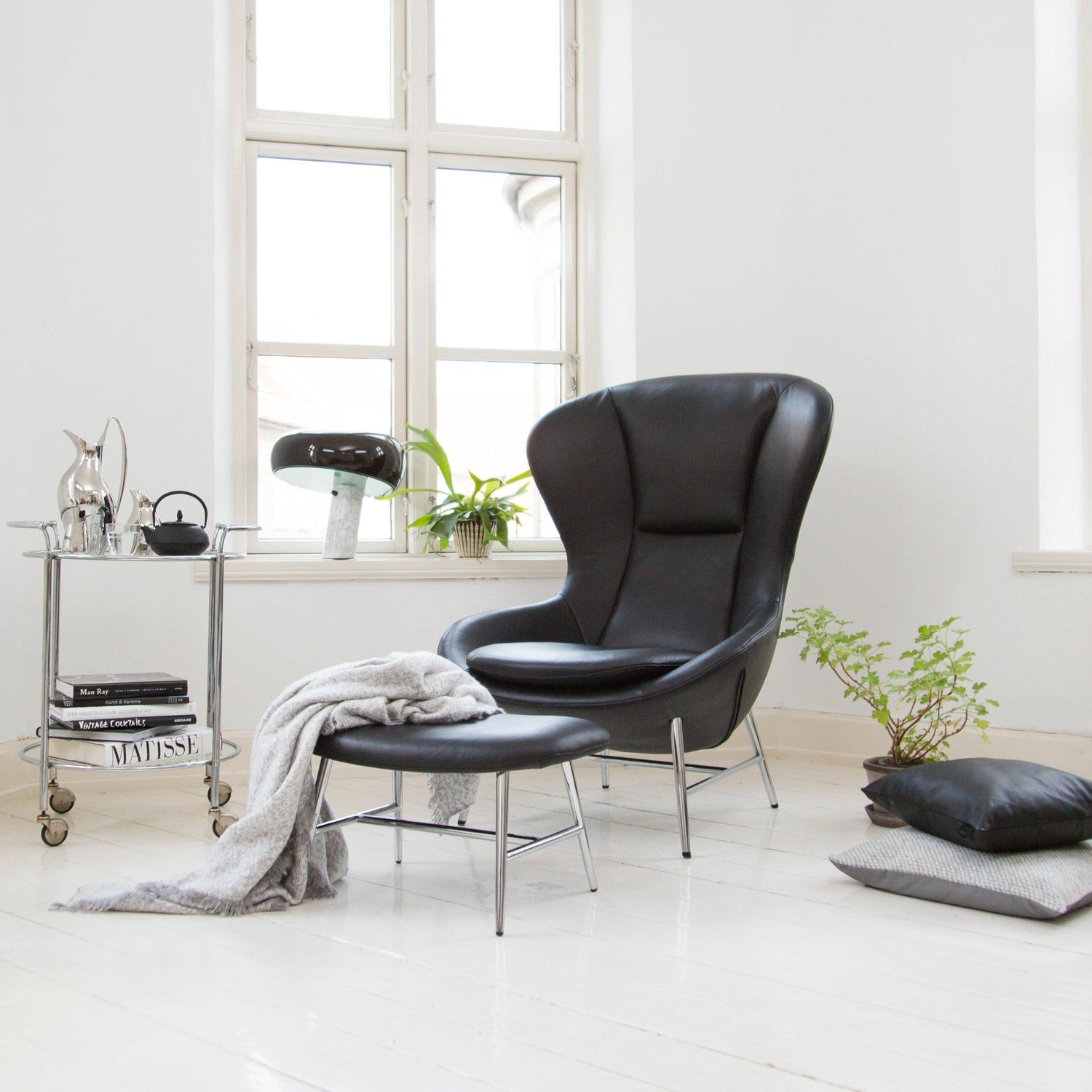 The Flexlux Queen armchair combines classic Scandinavian design with modern style. In addition to its exciting design and elegant finish, it offers extraordinary comfort. Available with chrome or black painted steel legs. It easily fits any sofa with clean lines, but is also a perfect choice on its own. For maximum comfort, a footrest can be ordered.