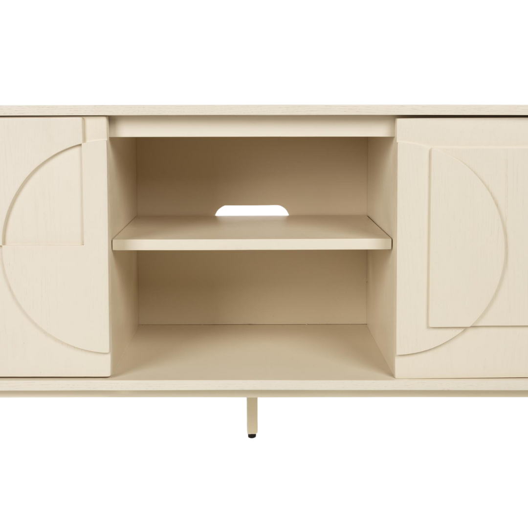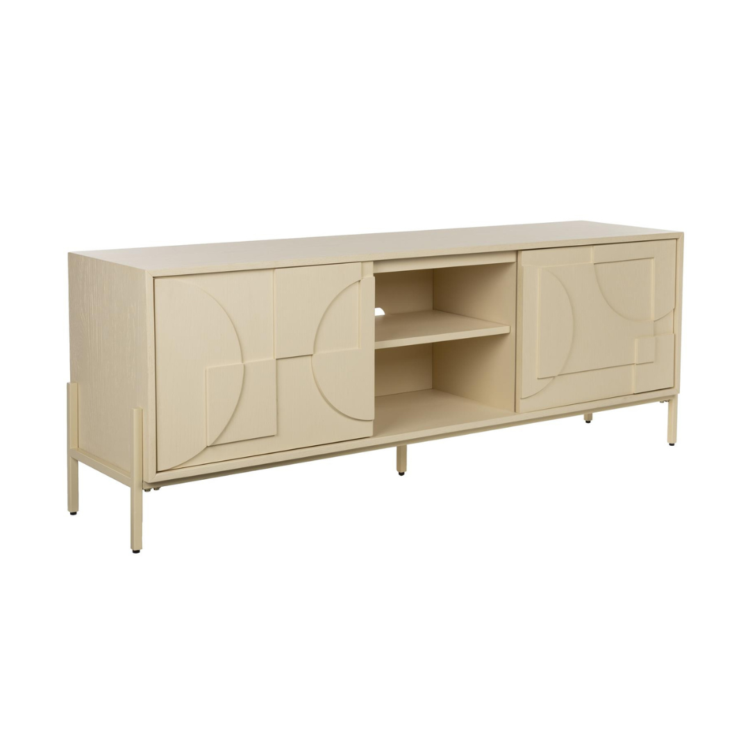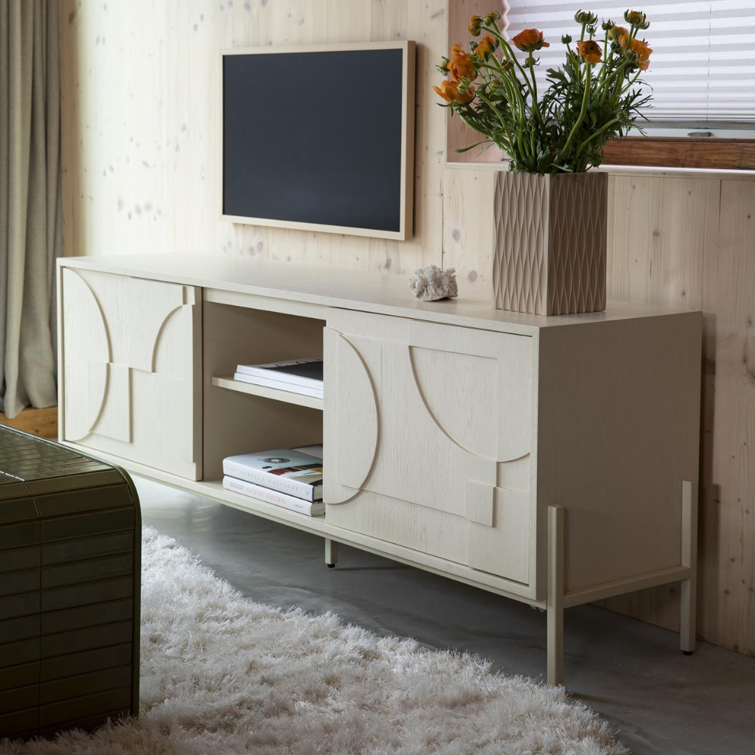 Admire the Faces cabinet, just like the unique features of a face. The doors are designed as graphic reliefs, which give the furniture an elegance and modernity. As the light changes throughout the day, so does the appearance of the cabinet. Faces offers eye-catching yet functional storage space. Available in beige and measuring 140x100x45 cm.