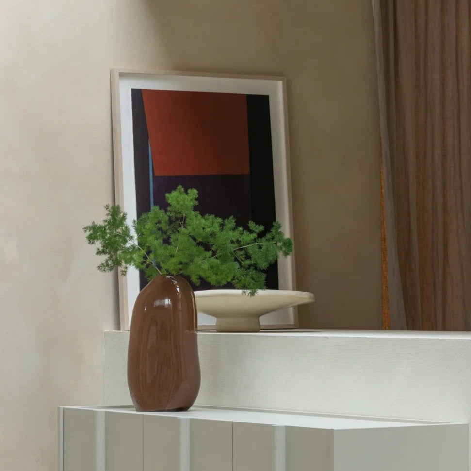 The Sahil glass vase can be a real eye-catcher in any interior. The dark brown glass vase has a narrow opening at the top, making it perfect for a bouquet of artificial, dried or fresh flowers. It can be a stylish addition to any space on its own or as a decoration.
