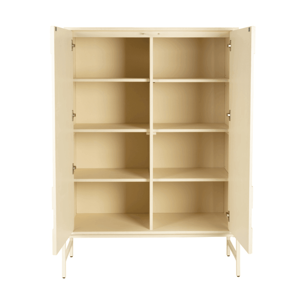 Admire the Faces cabinet, just like the unique features of a face. The doors are designed as graphic reliefs, which give the furniture an elegance and modernity. As the light changes throughout the day, so does the appearance of the cabinet. Faces offers eye-catching yet functional storage space. Available in beige and measuring 140x100x45 cm.