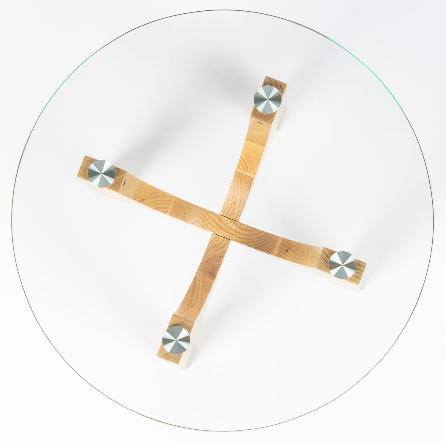 The Kobe side table is a stunning addition that perfectly combines modern design and function. Its unique appearance immediately attracts attention, as the natural wooden legs give the table an elegant, natural effect, while the transparent glass top provides a clean and airy look. Its practical and compact size makes it an ideal choice for anyone who wants to make the most of the available space.