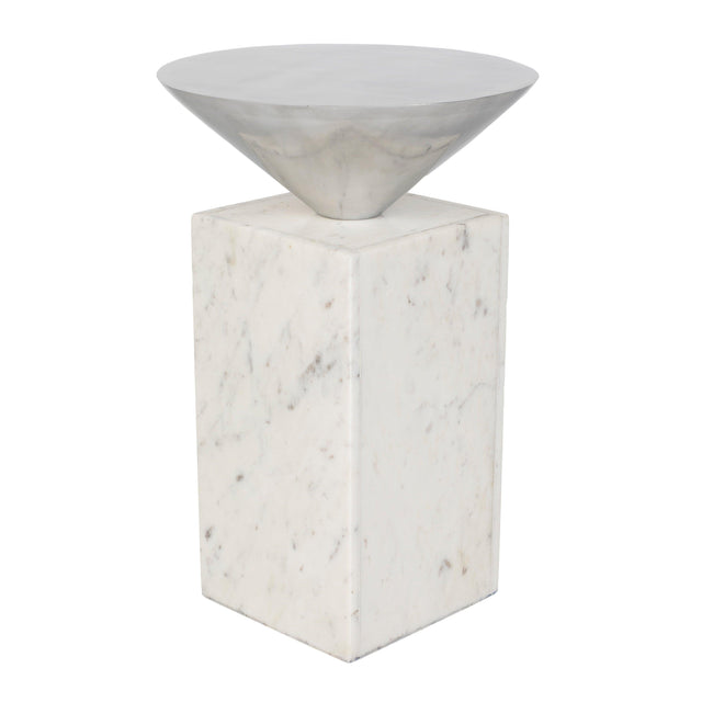 Discover the charm of the Pride side table, made of 100% natural marble. With a rectangular base and a conical top, this piece beautifully combines futuristic style with classic. The dynamic interplay of geometric shapes creates an eye-catching aesthetic.