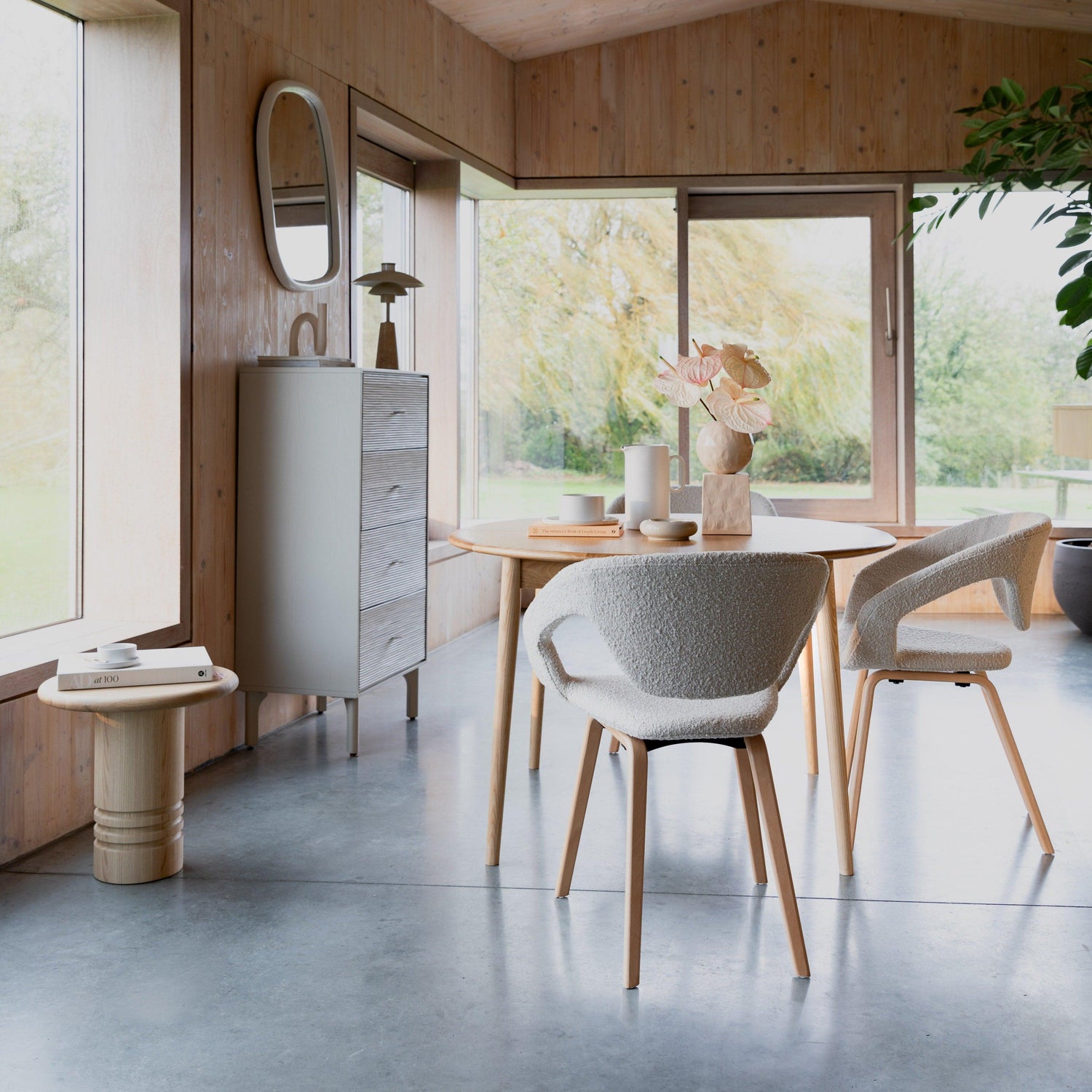 The Twist extendable dining table is perfect for smaller spaces, but can be converted into a larger table when friends and family come over. The natural wood grains of the veneer table top radiate warmth and bring nature into your home. Thanks to its quality materials, it has a long lifespan. It is available in two colors and can be converted from 120x120cm to 160x120cm.