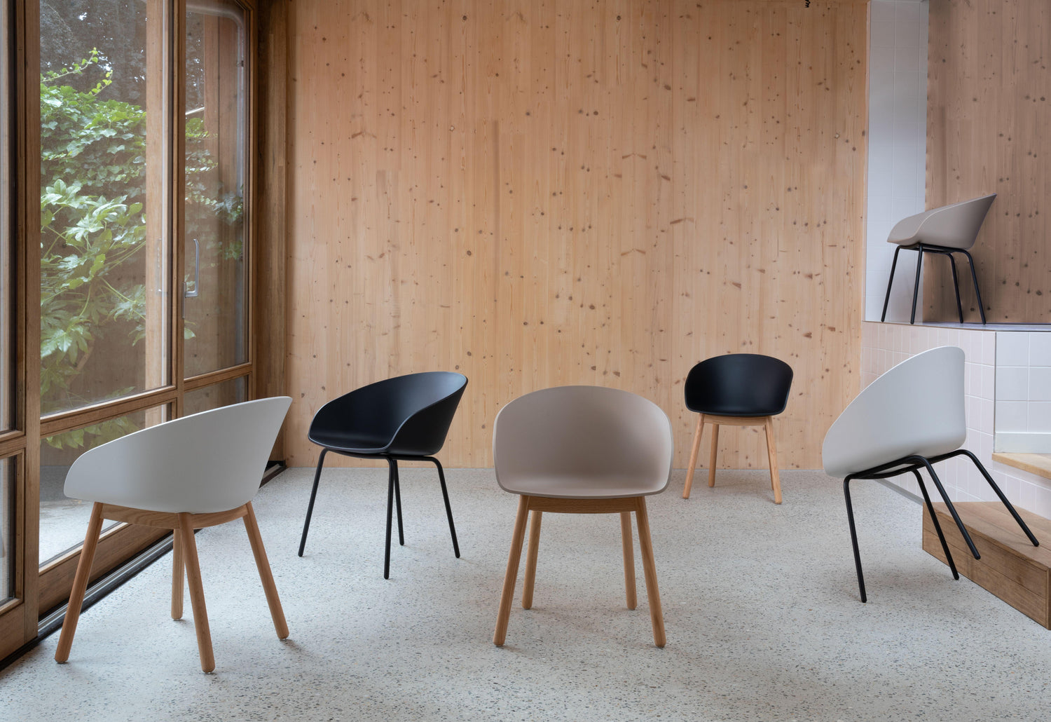 Void PP chair with armrests and natural legs - White is backordered and will ship as soon as it is back in stock.