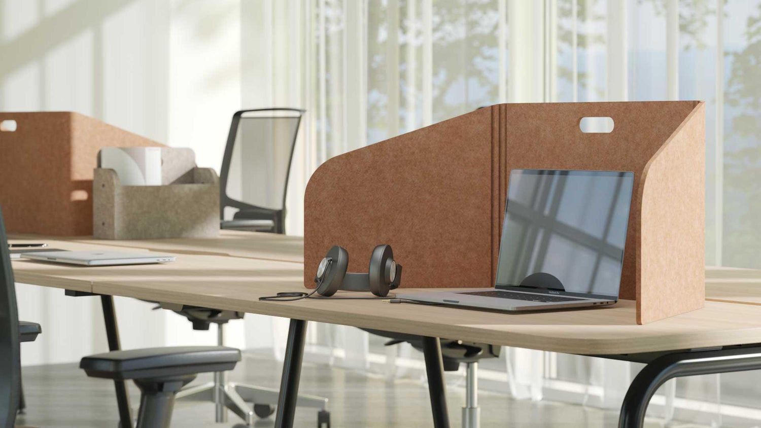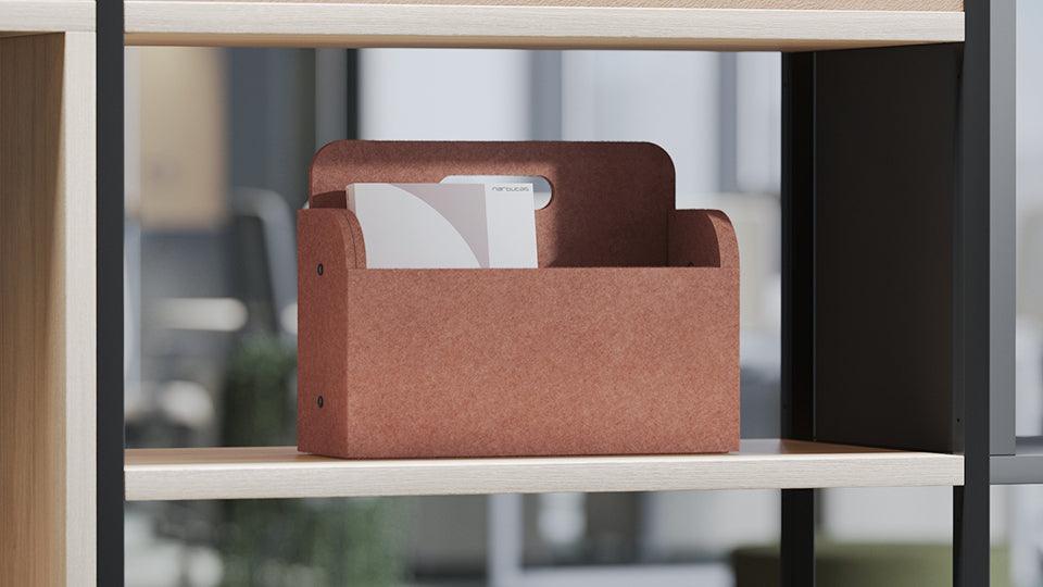 Do you want proper acoustics in your office? ACOUSTIC ARTWORK is exactly that. You can choose from four types of acoustic products that can be mounted on walls or ceilings: panels, tiles, pendants and accessories. The ACOUSTIC ARTWORK accessories include: a free-standing desk element made of PET felt, and a basket also made of PET felt, which helps with organized storage. These can be the perfect complementary elements for a functional and aesthetic workstation.